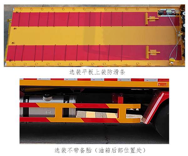 备注 | 该车用途为道路故障车辆、城市违章车辆及抢险救援等;主要专用装置为平板,绞盘,油缸,托臂总成等,托举质量(kg)/驾驶室准乘人数(人)对应关系:2000/2,1935/3;侧防护材料为Q235,侧防护采用螺栓连接,后防护由专用装置代替,下边缘离地高400mm,ABS系统控制器型号/生产企业:XH-KQ4S4M-E01/广州市西合汽车电子装备有限公司,CM4XL-4S/4M/广州瑞立科密汽车电子股份有限公司,VIE ABS-Ⅱ/浙江万安科技股份有限公司;后伸为410mm,470mm;该车选用底盘轴距3800mm;整车长度/后伸对应关系为(mm)7920/470,7860/410;该车后部安装有照明灯,该灯仅在驻车状态下使用,行驶过程中不开启;选装平板上带防滑条,选装不带备胎;仅选用底盘最高车速95km/h. |