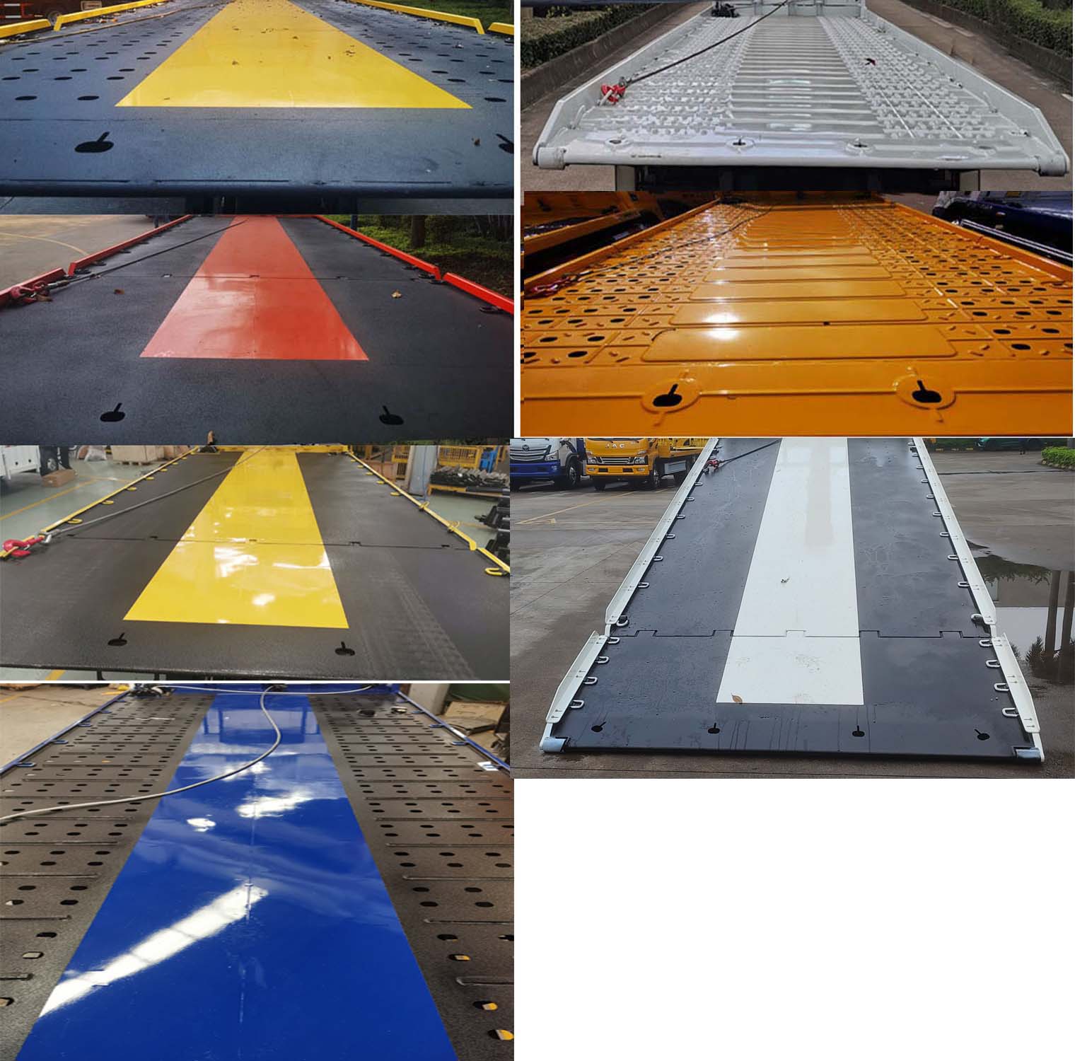 该车用于道路车辆清障,主要专用装置为绞盘,平板,托举装置,吊举装置。托举质量1270kg。选装平板板面外观。整车两侧防护与底盘纵梁间采用螺栓联接,材质为6063铝合金,后部为专用装置替代后防护,离地高度450mm。该车可选装限速装置,限速89km/h。仅采用6000mm轴距。ABS型号:CM4XL-4S/4M,ABS生产企业:广州瑞立科密汽车电子股份有限公司。 |