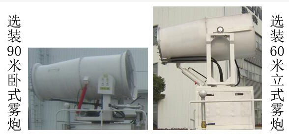 具有喷雾机总成装置,功能:喷洒抑尘固化剂等喷洒液实现抑制扬尘污染.仅选用4325mm+1350mm轴距.基本型为90米立式雾炮.可选装90米卧式雾炮,60米立式雾炮;左右侧防护装置采用铝型材,用螺栓螺母固定于箱体底部的连接支架上;后防护装置采用120×80×5的空心型钢(Q235A)与厚为10mm的钢板(Q345B)支架焊接而成,固定于底盘大梁两侧,离地高度为470mm.长(mm)--高(mm)--整备质量(kg)--载质量(kg)--驾驶室准乘人数(人)--后伸(mm)的尺寸对应关系,90米立式雾炮10995--3828--14930--9940--2--950,90米卧式雾炮10795--3298--14690--10180--2--750,60米立式雾炮10515--3548--14260--10610--2--470,90米立式雾炮10995--3828--14930--9875--3--950,90米卧式雾炮10795--3298--14690--10115--3--750,60米立式雾炮10515--3548--14260--10545--3--470.安装具有卫星定位功能的行驶记录仪.安装ABS,ABS系统控制器生产企业/型号为威伯科汽车控制系统(中国)有限公司/446 004 6300. |
