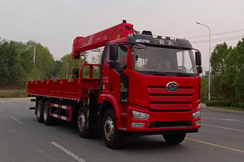 神百重工牌解放J6L前四后八国六12吨直臂随车起重运输车
