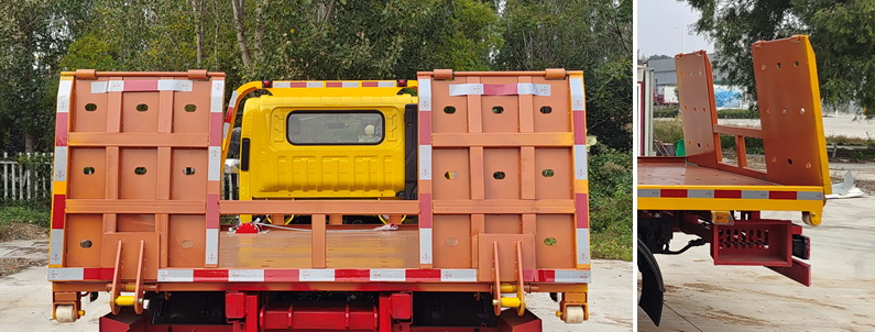 该车型主要用于托移道路故障车辆、城市违章车辆等工作,主要专用装置为平板、绞盘、钢丝绳、油缸;该车不具备拖牵功能;侧防护材质为Q235,离地高度400mm,右侧防护部分由工具箱代替,后部防护材质为Q235,通过焊接方式与车架连接,后部防护截面尺寸(mm)60×120,离地高度380mm;ABS型号:VIE ABS-Ⅱ,生产企业:浙江万安科技股份有限公司,型号CM4XL-4S/4M,生产企业:广州瑞立科密汽车电子股份有限公司;随底盘选装驾驶室前围面板,前部灯具,格栅,铝合金轮毂;选装带燕尾结构平板;选装不同外观结构样式后部延伸板;选装直接供电ETC车载装置;整备质量包含随车工具,不含备胎。 |