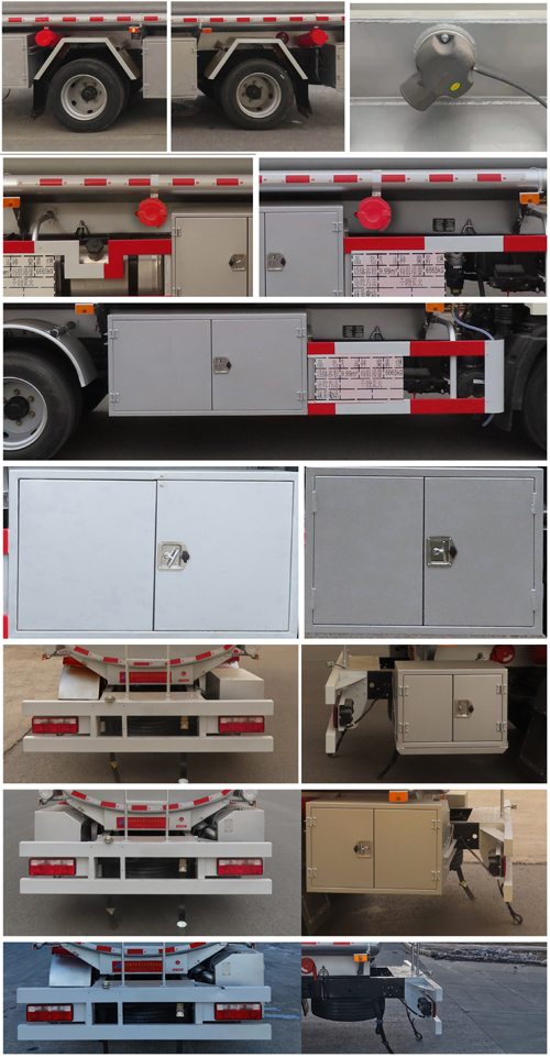 罐体尺寸:罐长4.75米,长轴1.95米,短轴1.35米,罐体总容量9.99立方米,有效容积9.52立方米.侧后防护材质均为Q235,均螺栓连接.后防护截面尺寸为120x60(高x宽)毫米,下平面距地高为450毫米.ABS生产厂家/型号:广州瑞立科密汽车电子股份有限公司/CM4XL-4S/4M;浙江万安科技股份有限公司/VIE ABS-II.排气管前置,前盘制动,安装限速装置,限速80km/h.安装具有卫星定位功能的行驶记录仪.该车转向轮已随底盘装备轮胎爆胎应急防护装置.仅选用底盘子午线轮胎.采用底盘3900mm轴距.随底盘选装驾驶室.选装危化品特征时仅选装WP3NQ160E61,D30TCIF1,CA4DD1-16E6,CA4DD2-18E6发动机.危险货物运输车辆的车辆类型FL.准运介质密度最大值700千克/立方米.加油机型号/厂家:JSK-70B1121CZ/稳恩佳力佳(北京)石油化工设备有限公司,CS20D1110F/正星科技有限公司,BL1111Z/珠海市贝林加油设备有限公司.选装:挡泥板样式、罐顶通气阀、灭火器筒安装位置、右侧中部长管路箱、箱门铰链样式、右侧后部安装工具箱及左侧后部无箱子状态、右侧后部安装管路箱及左侧后部安装加油机箱状态、右侧后部安装管路箱及左侧后部无箱子状态.可选装车载ETC装置. |