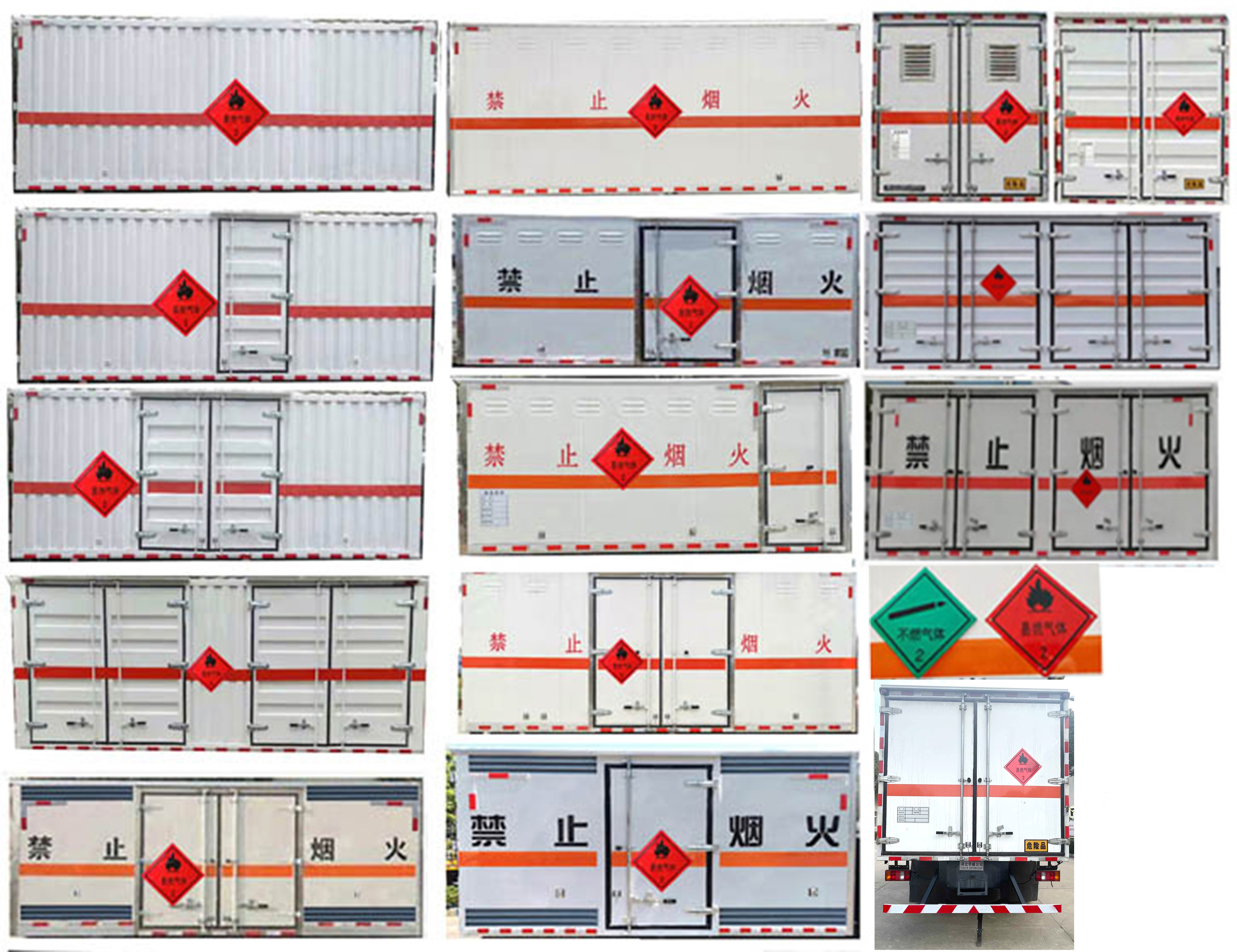 备注 | 1、该车为危险品运输车.厢体顶部封闭,不可开启.侧开门可左右对称安装.用于运输具有独立容器(瓶)包装的物品,类项号:2.1,2.2.运输易燃气体时挂2.1类警示牌,运输非易燃无毒气体时挂2.2类警示牌.2、后部安装液压尾板,液压尾板收起水平长度:300mm,尾板质量为450kg.侧防护材料为Q235,连接方式:螺栓连接,后防护材料为Q235,连接方式:焊接加螺栓连接,后防护截面高120mm,截面宽80mm,下边缘离地高500mm.选装后部不带尾板时,后防护装置材料:Q235,连接方式为焊接,后防护截面高120mm,截面宽50mm,下边缘离地高500mm.3,仅采用3800mm和4200mm轴距底盘,对应关系:前悬/外形长/轴距/后悬:1180/7650/4200/2270,1180/7350/4200/1970,1180/7400/3800/2420,1180/7100/3800/2120,1240/7650/4200/2210,1240/7350/4200/1910,1240/7400/3800/2360,1240/7100/3800/2060.安装限速装置,限速80km/h;仅采用排气管前置,前轮盘式制动器,子午线轮胎的底盘;转向轮安装轮胎爆胎应急防护装置,该车安装带有卫星定位功能的行驶记录仪;可选装ETC车载装置.ABS系统型号为XH-KQ4S4M-E01,生产企业为广州市西合汽车电子装备有限公司;型号为CM4XL-4S/4M,生产企业为广州瑞立科密汽车电子股份有限公司,型号为VIE ABS-Ⅱ,生产企业为浙江万安科技股份有限公司;发动机对应的油耗申报值:WP3NQ160E61/19.32L/100km,WP4.1NQ190E61/19.55L/100km,WP4.6NQ220E61/19.00L/100km;随底盘选装驾驶室,选装侧面后面结构样式. |