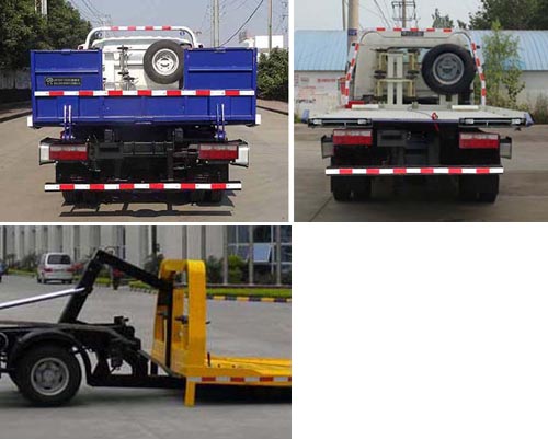 托举质量:520kg;选装后部托板结构,选装摆臂平板装置;侧面防护装置采用Q235材质,连接方式:焊接;后下部防护装置因工作装置干涉无法安装故豁免;ABS生产厂家/型号:上海万捷汽车控制系统有限公司/VIE ABS-II;主要专用装置为托举装置,用于道路故障车辆,城市违章车辆清理. |