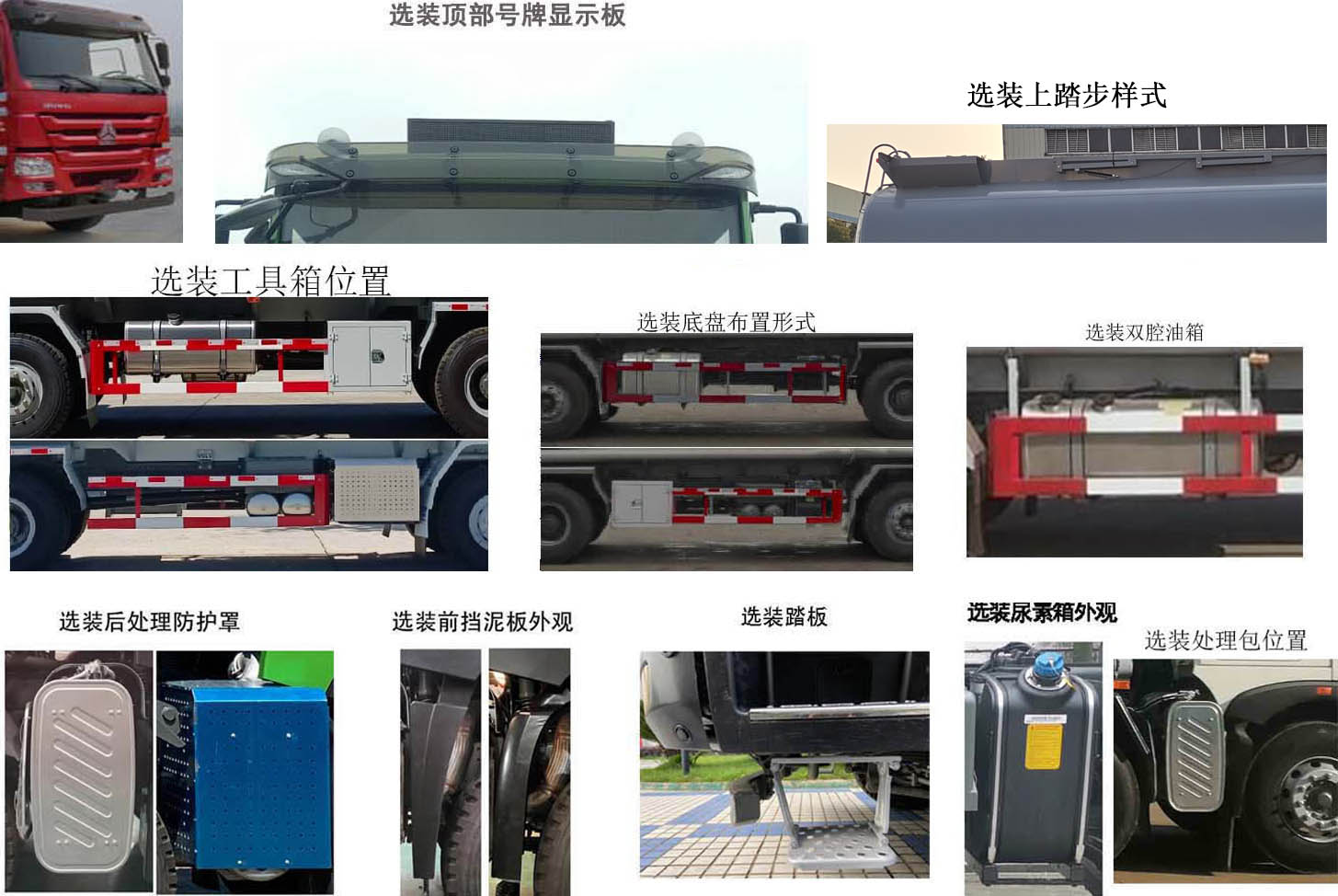 选用豪沃牌原厂生产底盘,轴距为1950+3225+1350,1950+3625+1350,1950+3825+1350,1800+3050+1350,1800+3000+1400,1800+3225+1350,1800+3425+1350,1800+3625+1350,1800+3825+1350,1950+2850+1400,1950+2900+1350,1950+3025+1350,1950+3425+1350(mm),型号为:ZZ1317V3867F1,匹配WP10H400E62;MC11.44-60;MC11.40-60;MC11.36-60;WP9H350E62发动机,对应马力为294;327;297;268;257(Kw),标配315/80R22.5 18PR,295/80R22.5,12R22.5,12.00R20 18PR,11.00R20轮胎,同时还加油精心优化的制动系统,制动效果好,加装ABS防抱死系统,更安全可靠,司机朋友们用起来更放心。