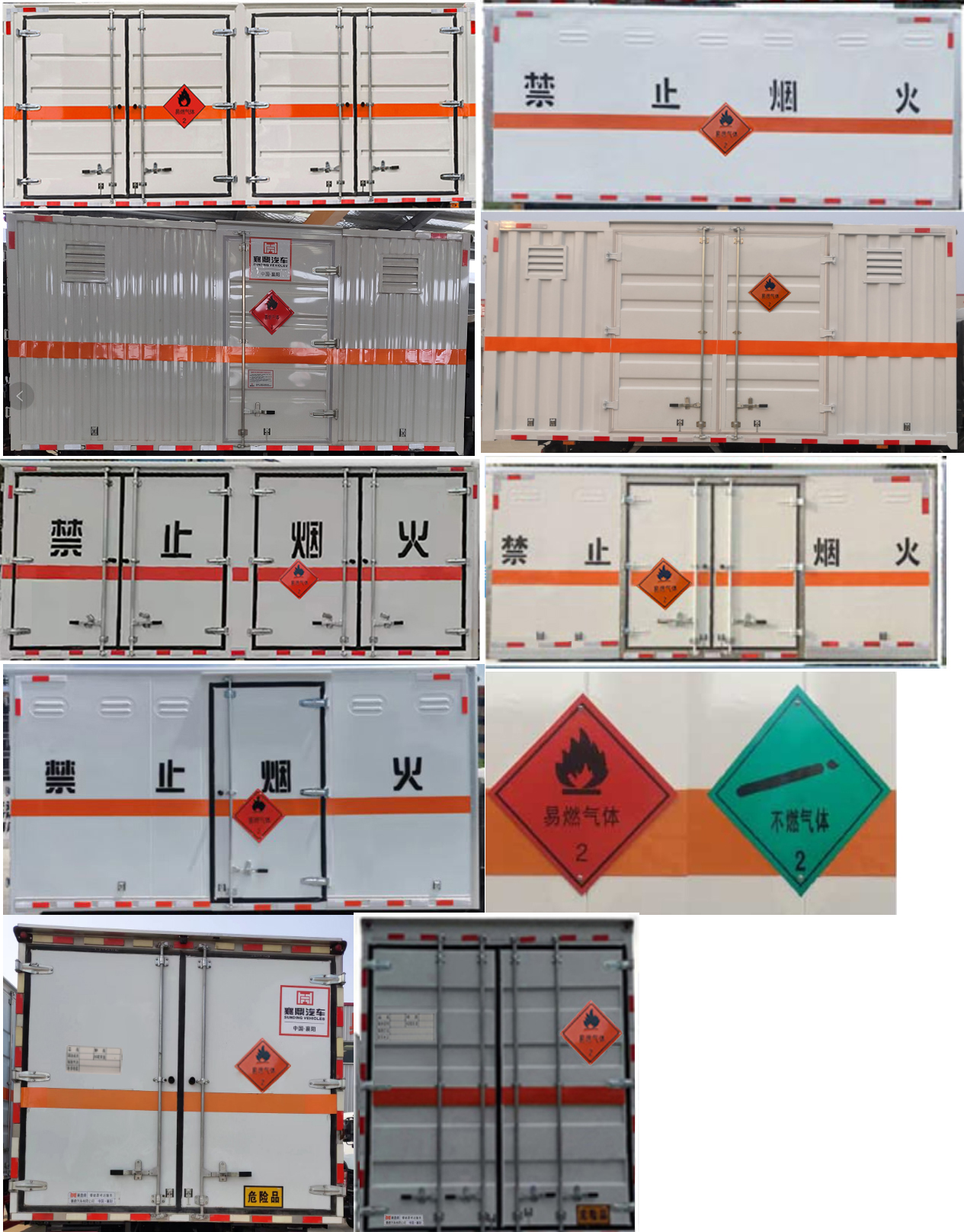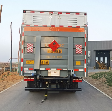 备注 | 厢体顶部封闭,不可开启;该车为危险品运输车,运输独立容器(瓶)包装的货物;危险货物类项号:2.1,2.2;运输易燃气体时挂2.1类警示牌,运输非易燃无毒气体时挂2.2类警示牌;仅选用3308mm轴距,整车长/前悬/轴距/后悬(mm)对应关系:6280/1130/3308/1842,6280/1230/3308/1742,6050/1130/3308/1612,6050/1230/3308/1512;发动机/油耗申报值(L/100km)对应关系为: ZD30D16-6N/17.2,YCY24140-60/16.5,NV30-C6G/17.3,CY4SK261/17.4, YCY30165-60/17.5, CY4BK361/17.9;侧防护材质为Q235,螺栓加焊接连接;装有液压尾板时后防护材质为Q235,螺栓加焊接连接,截面尺寸(mm)110,离地高度:400mm;尾板收起状态水平长度为290mm,尾板质量为450kg;ABS型号:ABS/ASR-24V-4S/4M,ABS生产企业:襄阳东风隆诚机械有限责任公司;仅采用前轮盘式制动器,前置排气管,子午线轮胎,静电带,限速装置的底盘,限速80km/h;转向轮安装爆胎应急防护装置;安装具有卫星定位功能的行驶记录仪;可选装直接供电ETC车载装置;选装不带液压尾板时后防护材质为Q235,螺栓加焊接连接,断面尺寸(宽×高):50×100(mm),离地高度:470mm;厢体侧面选装开门型式及位置,厢体后部选装不同结构型式,选装不同外观的合页,选装不同型号尾板,选装不带尾板. |