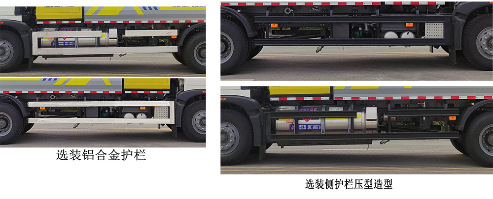 该车专用装置为喷雾系统装置、储液箱、气控系统,主要用于道路、广场或固定场所除霾降尘等作业.罐体长轴(mm)×短轴(mm)×长度(mm):2440×1750×3165,罐体有效容积8.5立方米,罐体总容量8.9立方米;仅选用5000mm轴距.选装A(PWY100B)雾炮时车辆的后伸(mm)/长度(mm)/高度(mm)/整备质量(kg)对应关系为:730/9770/3620/10990;选装B(PWD100A)雾炮时车辆的后伸(mm)/长度(mm)/高度(mm)/整备质量(kg)对应关系为:730/9770/3620/10990;选装C(PWD80A)雾炮时车辆的后伸(mm)/长度(mm)/高度(mm)/整备质量(kg)对应关系为:475/9515/3280/10810.侧防护材料为Q235B,选装铝合金,选装Q235B时侧护栏压型造型,后防护材料为Q345B,均与车辆采用螺栓连接;后防护截面尺寸为180mm×60mm,离地高度为490mm.ABS型号/生产厂家:4460046300/威伯科(上海)管理有限公司,随底盘选装EBS,EBS系统控制器生产企业/型号为威伯科(上海)管理有限公司/EBS3.随底盘选装驾驶室,可不选装遮阳罩,可不选装玻璃后风窗,可不选装驾驶室顶部天线,选装限速装置,最高车速(km/h)为80或89. |