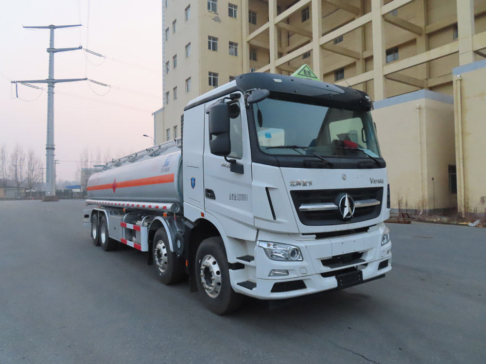 陆平机器牌北奔牌前四后八国六22.98方运油车底盘型号为ND1320DD6J7Z02,底盘轴距为1950+4350+1350,1950+4650+1350(mm),排放依据标准为GB17691-2018国Ⅵ,轮胎使用的规格为12R22.5 18PR,295/80R22.5 18PR,底盘配置潍柴动力股份有限公司