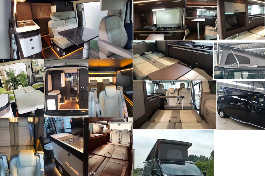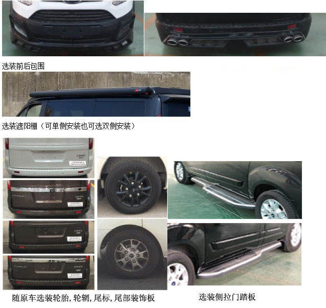 1.该车设有专用装置:座椅,睡具,炊具,储物柜,卫生设施等设施,用于旅游和野外工作人员宿营的专用汽车;选装遮阳棚,选装前后包围(车长为5033mm,对应前/后悬为1034mm/1066mm)等。随原车选装:轮辋样式,尾部标识、选装侧拉门踏板(无侧拉门踏板时宽度:2032mm,装配左右两侧侧拉门踏板时宽度:2095mm).ABS系统控制器型号:EV5051,生产厂:博世汽车部件(苏州)有限公司.选装ECU限速(限最高车速100km/h).选装不同内饰照片.选装可升降顶时车高2100mm,升降顶仅在驻车时升起. |