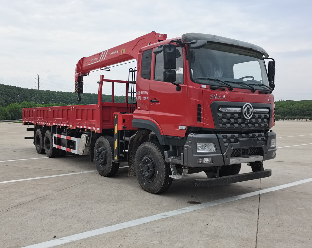 东风牌前四后八国六随车起重运输车外观端庄稳重,外形尺寸为12000×2550,2500×3750,3840,3930,3980(mm),总质量为31000(kg),上户吨位为11090,11025,11710,11645,10070,10005(kg),驾驶室准乘人数为2,3人,吊机选用老品牌吊机,采用先进制造工艺,应用高强度钢材,起重机性能卓越,经久耐用。吊机举升有利,作业范围广,操纵手柄采用摇杆机构,单个手柄能实现复合动作控制。货箱采用栏板式货箱,经典耐用,运输货物稳定牢固。