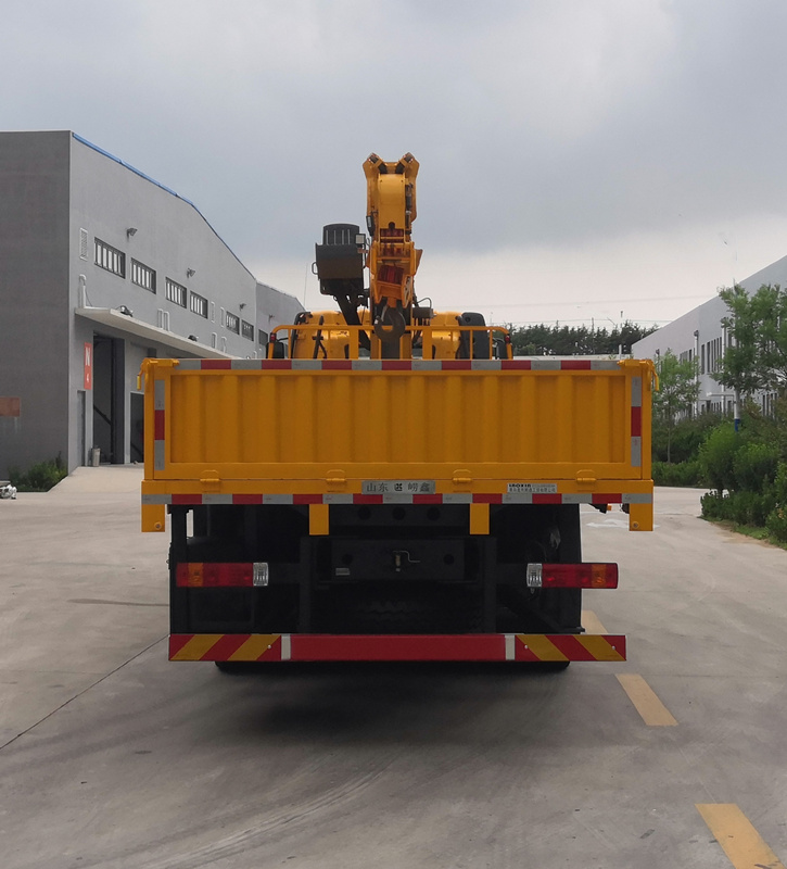 崂鑫牌解放后双桥J6L国六随车起重运输车在外观上比普通载货汽车多装置一个吊机,设计科学。整车外形尺寸为11995×2550×3830(mm),上户吨位为8640,8575(kg),总质量为25000(kg),吊机选用品牌吊机,起重量大,承载力强,安全可靠。此款随车吊液压系统中的液压油缸采用高压镀锌钢材质,硬度好耐压强,举升有力,伸缩自如,防腐防锈。轻松实现货物的升降、回转与吊运。