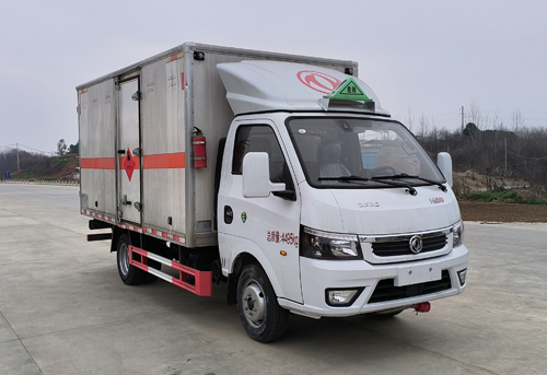 厢体顶部封闭,不可开启;该车为危险品运输车,运输独立容器(瓶)包装的货物;危险货物类项号:2.1,2.2;运输易燃气体时挂2.1类警示牌,运输非易燃无毒气体时挂2.2类警示牌;整车长/前悬/轴距/后悬(mm)对应关系:5995/1190/3200/1605,5720/1190/2800/1730,5520/1190/2800/1530,5470/1190/2600/1680,5220/1190/2600/1430,4920/1190/2600/1130;发动机/油耗申报值(L/100km)对应关系为Q23-95E60/11.2;侧防护材质为Q235,焊接连接,后防护材质为Q235,焊接连接,断面尺寸(宽×高):50×100(mm),离地高度:420mm;ABS厂家及型号:襄阳东风隆诚机械有限责任公司/ABS/ASR-12V-4S/4M;仅采用前轮盘式制动器,前置排气管,子午线轮胎,静电带,限速装置的底盘,限速80km/h;转向轮安装爆胎应急防护装置;安装具有卫星定位功能的行驶记录仪;可选装直接供电ETC车载装置;该车整备质量包含备胎,灭火器,随车工具等;整备质量/厢体重量(Kg)对应关系:2670/920,2570/820,2435/685;夹层结构车厢墙板材质:外板均为冷扎板,中间挤塑板,内板为镀锌钢板或铝板.车厢前板,顶板,侧板,后门板厚度为40mm. |