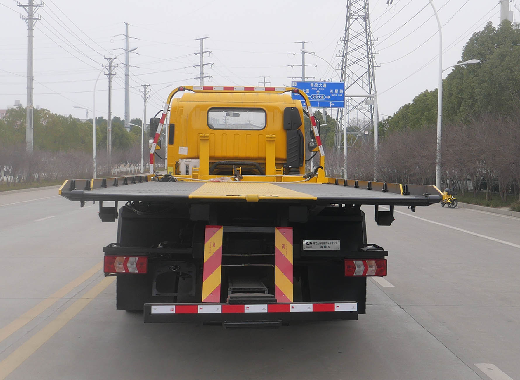 该车用途为道路故障车辆,城市违章车辆拖运;主要装置为托举平板,后托臂,绞盘,液压装置组成.当整备质量为8700kg时,托举质量为5160kg;当整备质量为9000kg时,托举质量为4860kg,当整备质量为9300kg时,托举质量为4560kg;侧防护采用Q235材料,采用螺栓连接,后防护装置由专用装置代替,离地高度(mm):400.ABS控制器型号/厂家:CM4XL-4S/4M/广州瑞立科密汽车电子股份有限公司.该车选装ETC车载装置.选装限速装置时最高车速为89km/h. |