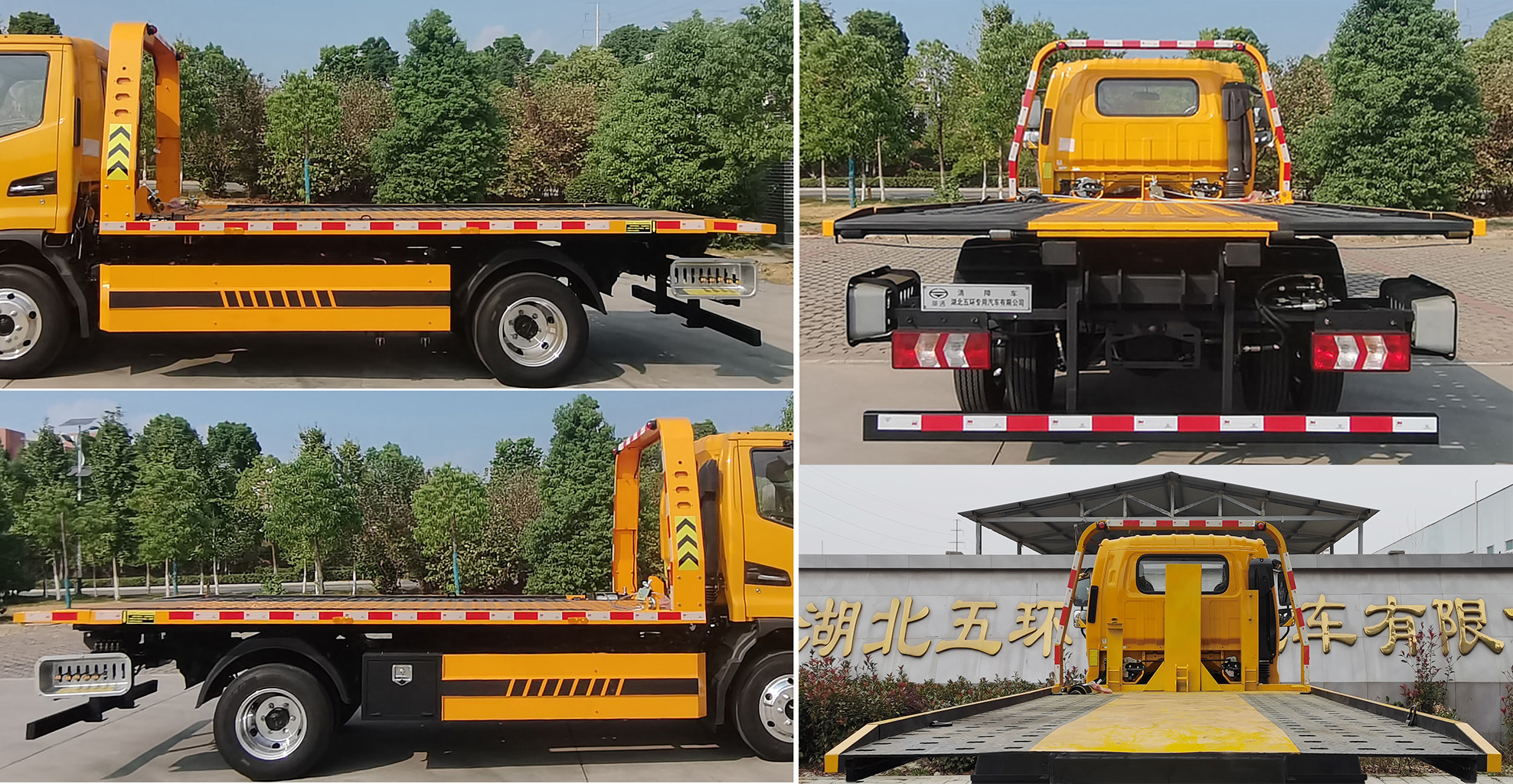 该车主要用于道路清障,主要专用装置为平板、绞盘、钢丝绳、油缸,该车无托举功能.侧、后防护材料均为Q235,侧防护采用螺栓连接,后部防护断面尺寸(mm):100×50,离地高度:455mm,采用螺栓连接;该车整备质量对应的配件包括随车工具、三角垫木等,不含备胎.ABS型号厂家为YF8/武汉元丰汽车电控系统有限公司.随底盘选装驾驶室.选装铝合金轮辋及铁质轮毂.随底盘选装驾驶室高度2260mm,选装后托板结构,选装整车外观样式,选装全落地样式。 |