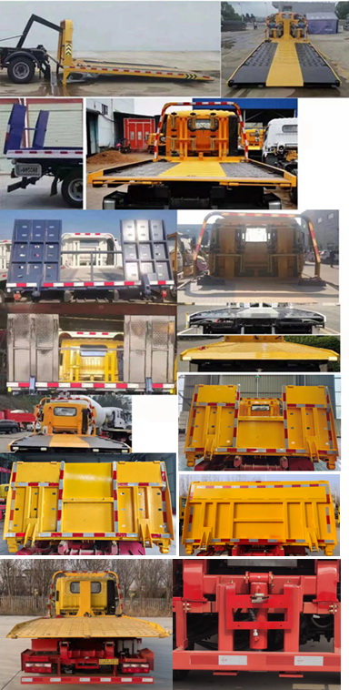 该车型主要用于托移道路故障车辆、城市违章车辆等工作,主要专用装置为平板、绞盘、钢丝绳、油缸;该车不具备拖牵功能;侧防护材质为Q235B,离地高度380mm,右侧防护部分由工具箱代替,后部防护材质为Q235B,通过焊接方式与车架连接,后部防护截面尺寸(mm)60×120,离地高度370mm;发动机最大净功率为:CA4DB1A13E6(93.2kW),CA4DB1-13E6(93kW),Q23-132E60(94kW),CA4DB1-12E6(86kW),WP2.3NQ130E61(92kW);ABS生产厂家/型号:广州瑞立科密汽车电子股份有限公司/CM4XL-4S/4M,浙江万安科技股份有限公司/VIE ABSII;随底盘选装驾驶室、前围、前部灯具;选装直接供电ETC车载装置;轴距/后悬/离去角对应关系为:3600mm/1280mm/10°,3300mm/1580mm/8°;选装不带后部燕尾结构平板;选装不同外观结构样式尾板延伸板;整备质量包含随车工具,不含备胎。 |
