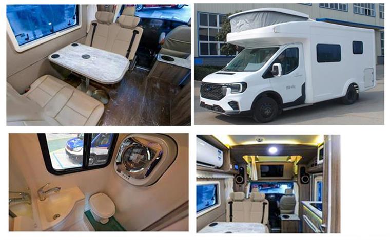 齐星牌江铃全顺牌国六C型旅居车在外观时尚霸气造型圆润流畅,可有效降低风阻系数,整车外形尺寸为5990×2325,2400×2800,2830(mm),房厢采用玻璃钢复合车身结构及阻燃保温材料,做工精细;房厢内部配置齐全,床,洗手间,厨房,冰箱,,储物仓,暖气设备,灭火器等等。