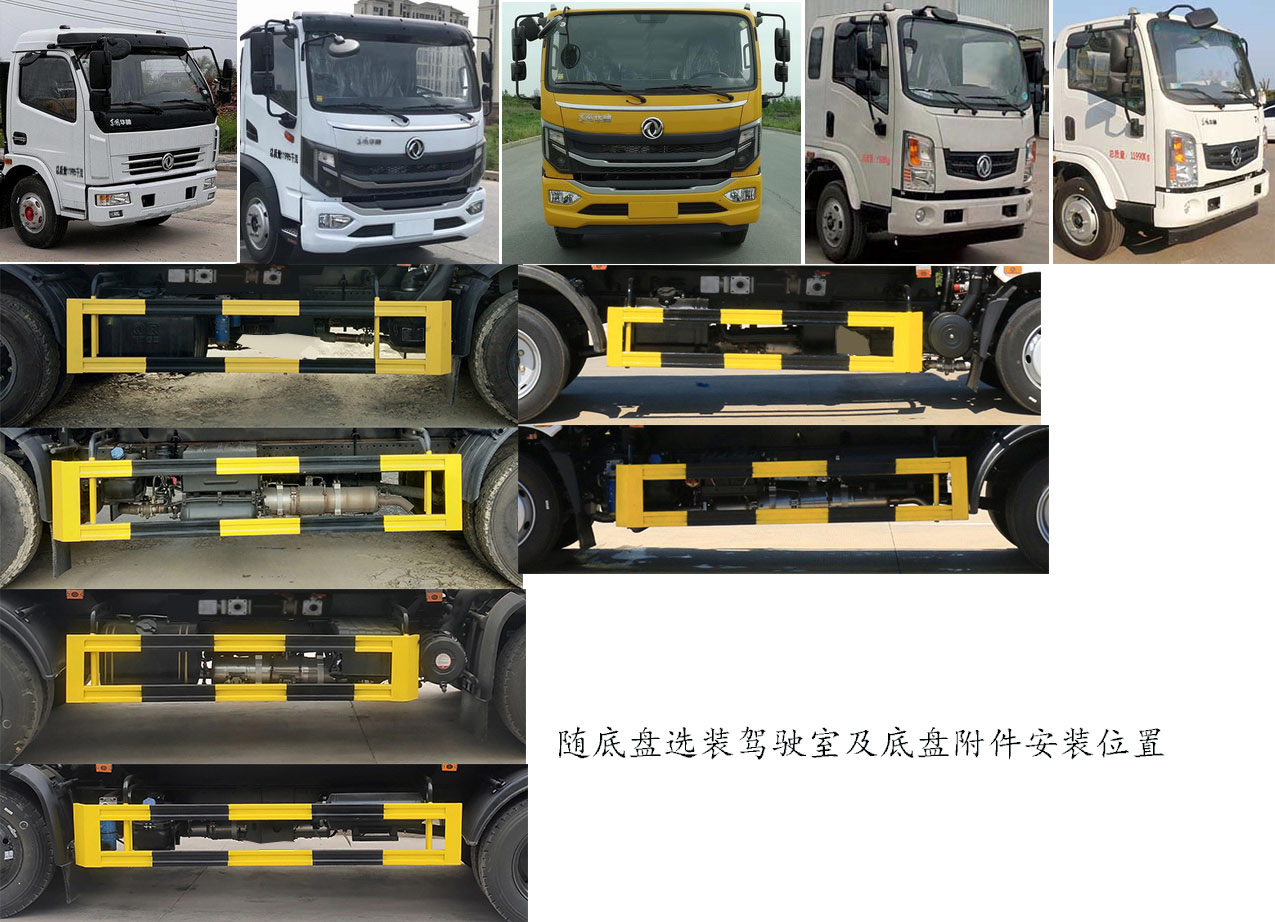 凯力风牌东风华神T3国六6.1方多功能抑尘车的底盘型号为EQ1120GL6DJ,底盘轴距为3800,3950,4500(mm),轮胎规格为8.25R20 14PR,8.25R20 16PR,245/70R19.5 16PR,使用YCY30165-60;D25TCIF1;D30TCIF1型号的发动机,排放符合国家环保要求,排放依据标准为GB17691-2018国Ⅵ,底盘承载能力强。