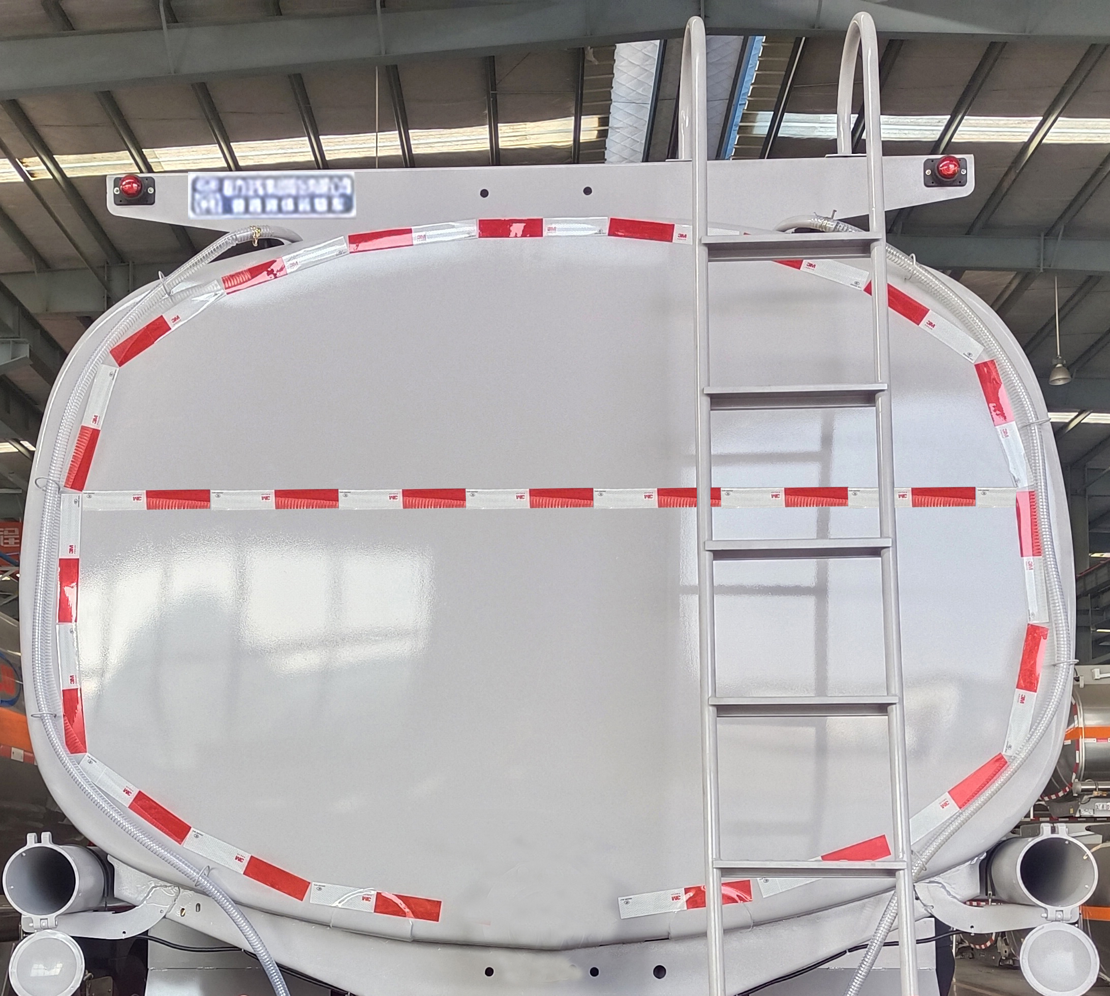 该车为非危化品运输车;准运介质最大密度(千克/立方米)为630.罐体总容量:20.6立方米,罐体有效容积:19.68立方米,罐体外形尺寸(长×宽×高)(mm)为:7000×2480×1750.侧,后防护装置材料材质均为Q235B碳钢,连接方式:左右侧面及后下部防护均采用螺栓连接,后下部防护断面尺寸(高×宽) (mm):140×50,后下部防护离地高度(mm):490.整车长(mm)/轴距(mm)/后悬(mm)对应关系分别为:9980/4575+1400/2480,9780/4375+1400/2480.ABS系统生产厂家及型号分别为:西安正昌电子股份有限公司(型号:ZQFB-V).选装直接供电式ETC车载装置.发动机油耗值(L/100km)对应关系为WP9H336E62(32.41),WP9H310E62(32.41),WP9H390E62(32.41),WP10H375E62(32.41),WP10H400E62(32.41),WP8.350E61(32.41).安装有具有卫星定位功能的行驶记录仪,安装限速装置,限速89km/h.随底盘选装驾驶室,选装车辆后部外观图片。 |