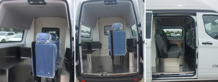 润知星牌江铃福特国六面包式流动服务车在外观时尚霸气造型圆润流畅,可有效降低风阻系数,整车外形尺寸为5341×1986,2040×2390(mm),厢体采用玻璃钢复合车身结构及阻燃保温材料,做工精细;房厢内部配置齐全。