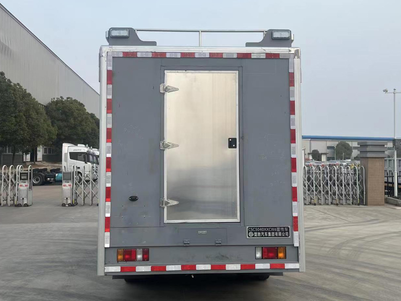 该车是用于广告宣传和法制、科普宣传的专用车,主要专用装置: LED显示屏,消防器材展示系统;车厢顶部封闭且不可开启.侧后防护均为裙板结构代替,后防护离地高度440mm.ABS型号/生产企业:APG3550500A/浙江亚太机电股份有限公司,CM4YL/广州瑞立科密汽车电子股份有限公司;装气压制动系统时,ABS及其控制器型号/生产企业对应关系为:CM4XL-4S/4M/广州瑞立科密汽车电子股份有限公司.选装:镀铬前脸,驾驶室后围不开窗,盲窗,加宽轮眉,不同造型风格、不同材质(铝/铁)轮辋,“KV100/M100”标牌.货厢重量1941kg,底板、边板及顶板材料为Q235,厚度1.2mm,LED屏,厚度6.0mm/144mm.内部固定装置投影面积大于50%厢内面积,整备质量不含备胎,包含标准备件.厢体上部白色灯为作业灯具,仅用于作业状态下使用. |