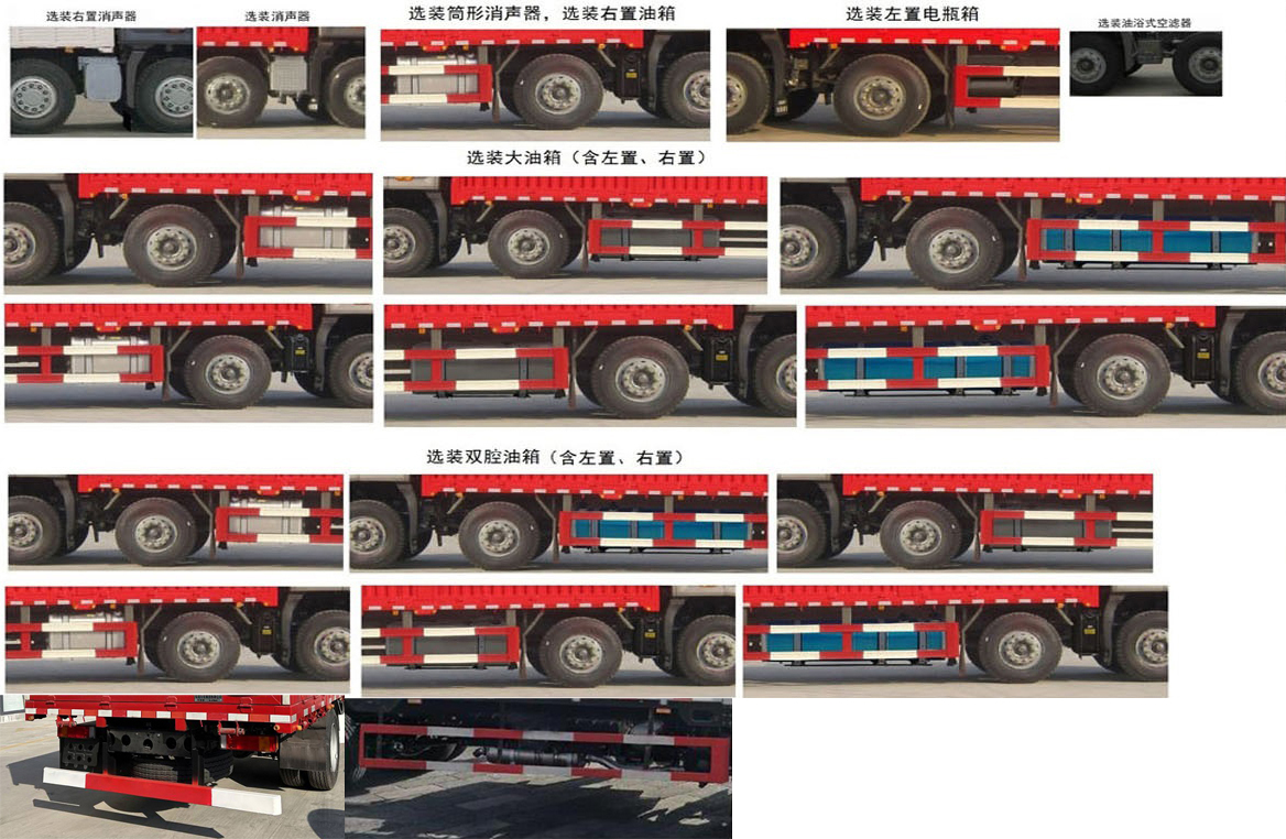 1.侧防护材质:Q235,与车架螺栓连接;后部防护材质:Q235,断面尺寸(高×宽)为120×60(mm),连接方式:与车架螺栓连接,离地高度:480mm,470mm,460mm,440mm;2.该车已装备具有卫星定位功能的行驶记录仪;3.ABS型号及生产厂家为:3631010-C2000/东科克诺尔商用车制动系统(十堰)有限公司,J ABS/焦作博瑞克控制技术有限公司,ABS-E 4S/4M/威伯科汽车控制系统(中国)有限公司;4.随底盘选装同系列驾驶室,选装二级掉踏,选装车门拉花 ,驾驶室字体,选装遮阳罩;选装油箱、尿素罐、电瓶框布置位置,选装车架尾横梁;选装油箱材质,选装货厢样式及开门形式,选装工具箱;选装升降尾板,尾板收起时水平长度295mm,尾板质量550kg;仅选装尾板时选用断面尺寸为Φ121、后防护材质:Q235、连接方式:焊接、离地高度480mm,470mm,460mm,440mm和断面尺寸(高×宽)为120×60(mm)、后防护材质:Q235、连接方式:螺栓连接加焊接、离地高度480mm,470mm,460mm,440mm的两种后防护装置;5该车型可选装ETC车载装置,选装前轮盘式制动器;6.发动机YCK08350-60对应的油耗申报值为31.5L/100km,发动机WP8.350E61对应的油耗申报值31.5L/100km,发动机YCS06270-60对应的油耗申报值为31.5L/100km;7.厢体顶部封闭,不可开启,仅选用1900+3000,1900+3500,1900+4000,1900+4500轴距. |