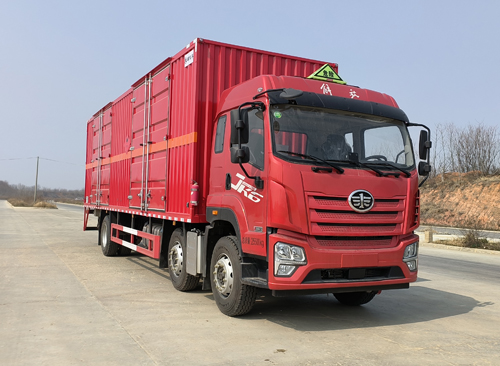 厢体顶部封闭,不可开启;该车为危险品运输车,运输独立容器(瓶)包装的货物;危险货物类项号:2.1,2.2;运输易燃气体时挂2.1类警示牌,运输非易燃无毒气体时挂2.2类警示牌;仅采用1900+5300mm,1900+5000mm轴距,整车长/前悬/轴距/后悬(mm)对应关系:11980/1410/1900+5300/3370,10900/1410/1900+5000/2590;发动机/油耗申报值(L/100km)对应关系为:CA6DLD-29E6/35.83,CA6DLD-26E6/35.83;侧防护材质为Q235,焊接连接;装有液压尾板时后防护材质为Q235,焊接连接,断面尺寸(宽×高):50×120(mm),离地高度:430mm;尾板收起状态水平长度为300mm,尾板质量为550kg;EBS型号:1.EBS 5/ EBS系统生产厂家:克诺尔制动系统(大连)有限公司;仅采用前轮盘式制动器,前置排气管,子午线轮胎,静电带,限速装置的底盘,限速79km/h;转向轮安装爆胎应急防护装置;后轴装配空气悬架,安装具有卫星定位功能的行驶记录仪;可选装直接供电ETC车载装置;选装不带液压尾板时后防护材质为Q235,焊接连接,断面尺寸(宽×高):50×120(mm),离地高度:430mm;选装不同厂家尾板以及尾板外观,无尾板后部样式. |