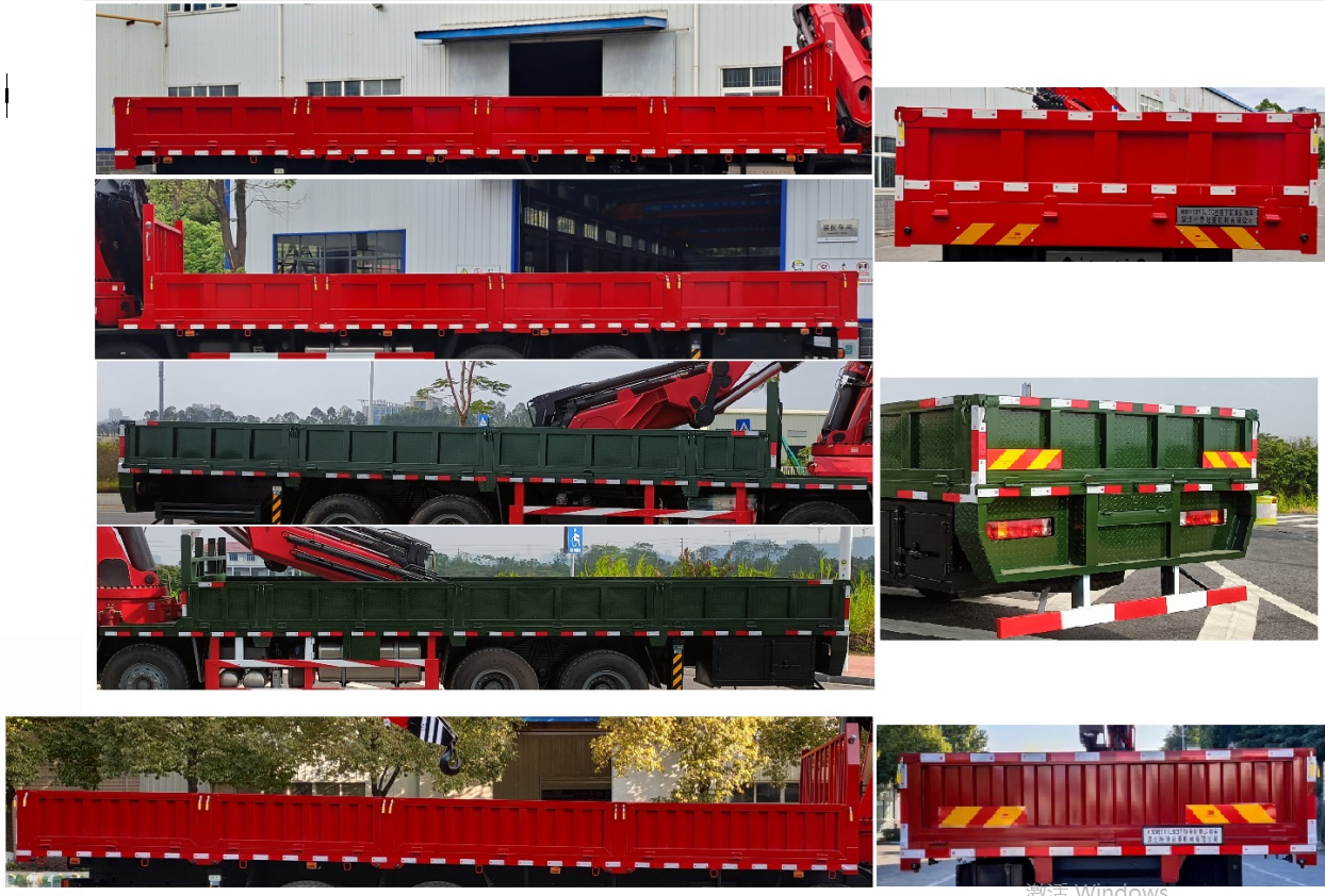 折臂式吊机型号/吊机质量(kg)/最大起升载荷(kg)/整备质量(kg)/载质量利用系数对应关系为: SQ580/8700/9000/(24000,22900,21950)/(1.02,1.18,1.33);选装吊机型号/吊机质量(kg)/最大起升载荷(kg)/整备质量(kg)/载质量利用系数对应关系为: SQ600/8700/9000/(24000,22900,21950)/(1.02,1.18,1.33);SQ500/8700/9000/(24000,22900,21950)/(1.02,1.18,1.33);SQ400/7500/11000/(22900,21950)/(1.01,1.14);SQ14/6500/12000/21950/1.00;专用功能及装置:货箱和吊机,用于货物的起吊和托运。侧后防护装置材料为Q235,侧防护连接方式为螺栓连接,后部防护连接方式为焊接,后部防护断面尺寸为120×80mm,离地高度为440mm。整车长/前悬/轴距/后悬的对应关系为(mm):12000/1500/2050+4400+1350/2700;12000/1525/2050+4400+1350/2675;12000/1500/2150+4300+1350/2700;12000/1525/2150+4300+1350/2675;ABS型号/生产企业:3631010-C2000/东科克诺尔商用车制动系统(十堰)有限公司;发动机/油耗值(L/100km)对应关系为:L9NS6B360/37.1;安装有具有卫星定位功能的行驶记录仪,选装直接供电式ETC车载装置.随底盘选装驾驶室,选装前面罩、遮阳罩,选装干燥器布置位置,选装尿素罐布置位置,选装货箱栏板样式,选装吊机型号,选装大臂外形,选装吊臂卷扬。 |