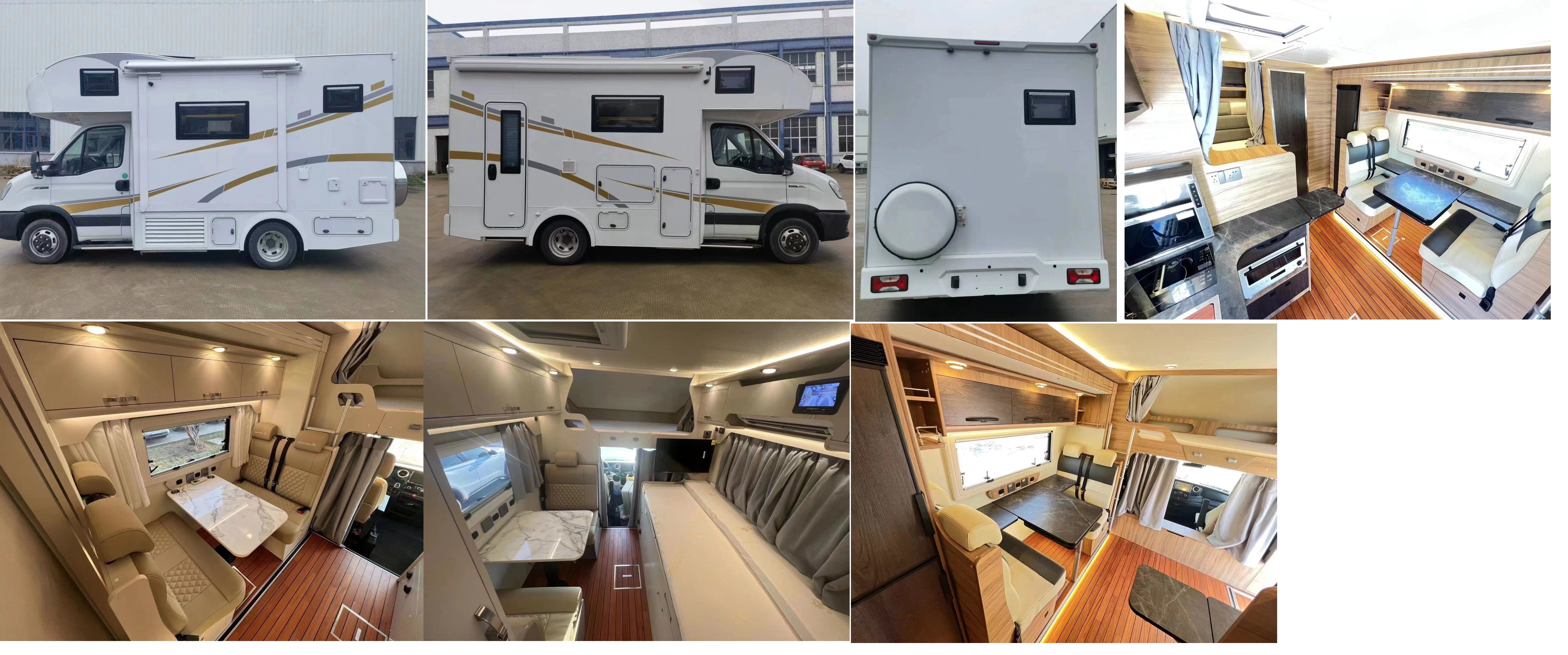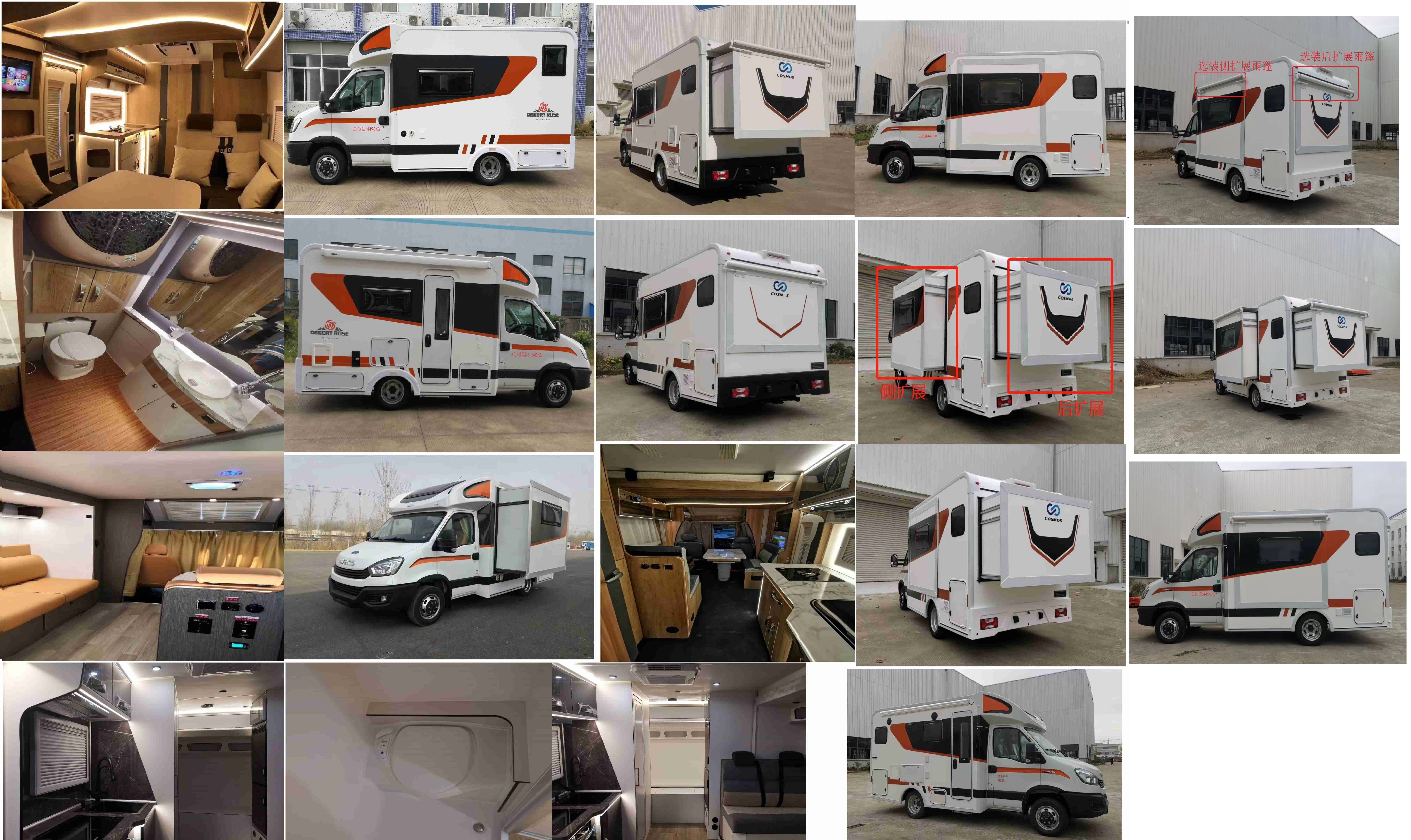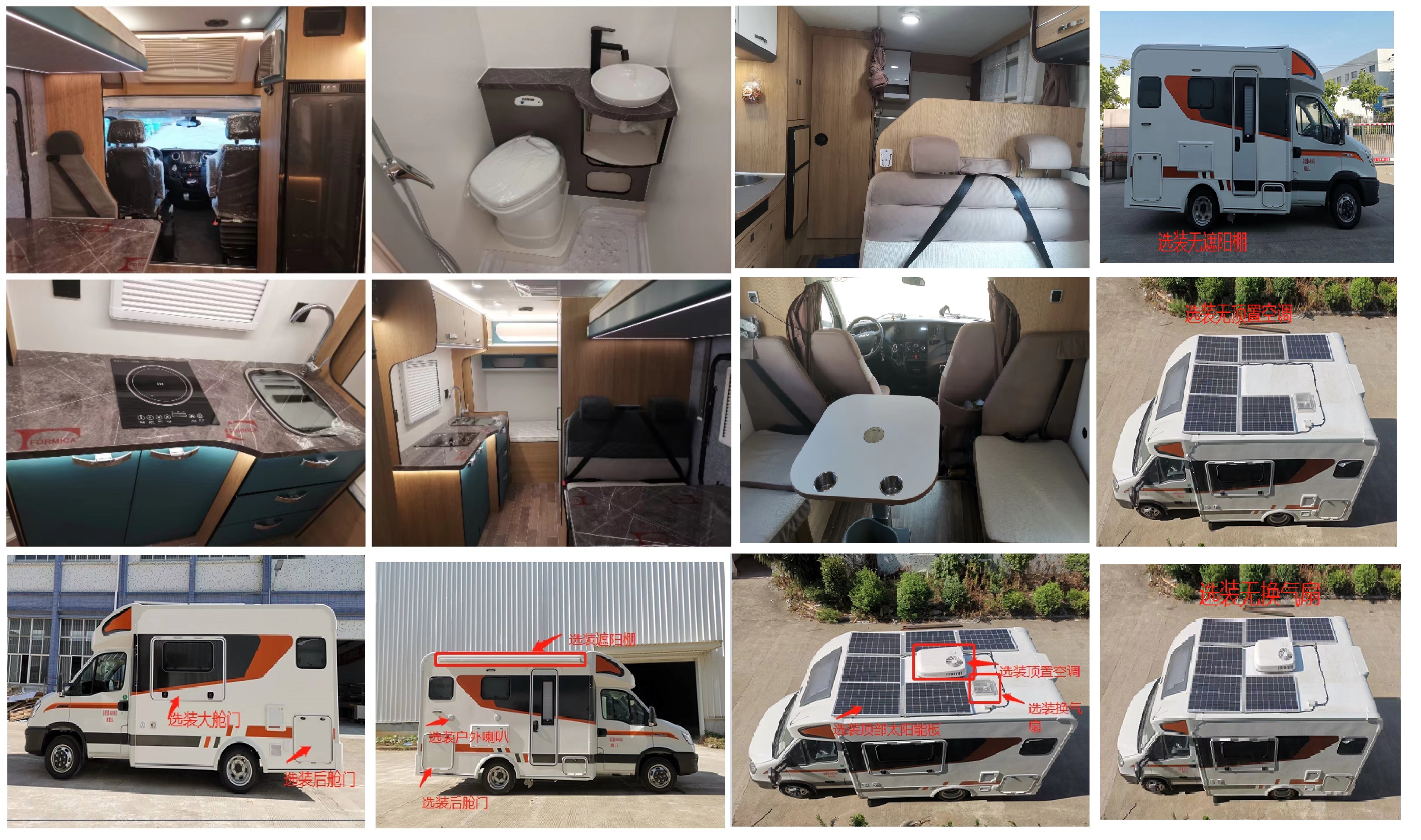 1.该车型配备厨具、睡具、床柜、卫生间等旅居生活专用装置.2.该车侧面及后面为裙边结构,侧裙边离地高355mm,后裙边离地高420mm,3.该车后侧车厢可选装有拓展机构,左侧可选装扩展,可选装扩展舱雨篷,可根据布局改变选装充电口、入口门、两侧风窗、两侧舱门、后部舱门位置及样式大小;选装侧窗、遮阳棚、户外喇叭,无选装遮阳棚对应宽度2300mm,选装遮阳棚对应尺寸2400mm,选装顶置空调时高度为3050mm,无选装时高度为2880mm,选装顶部换气扇时高度为2950mm,选装大额头.4.ABS系统控制器型号:BOSCH ABS9、BOSCH ESP9,ABS系统控制器生产企业:BOSCH公司. |