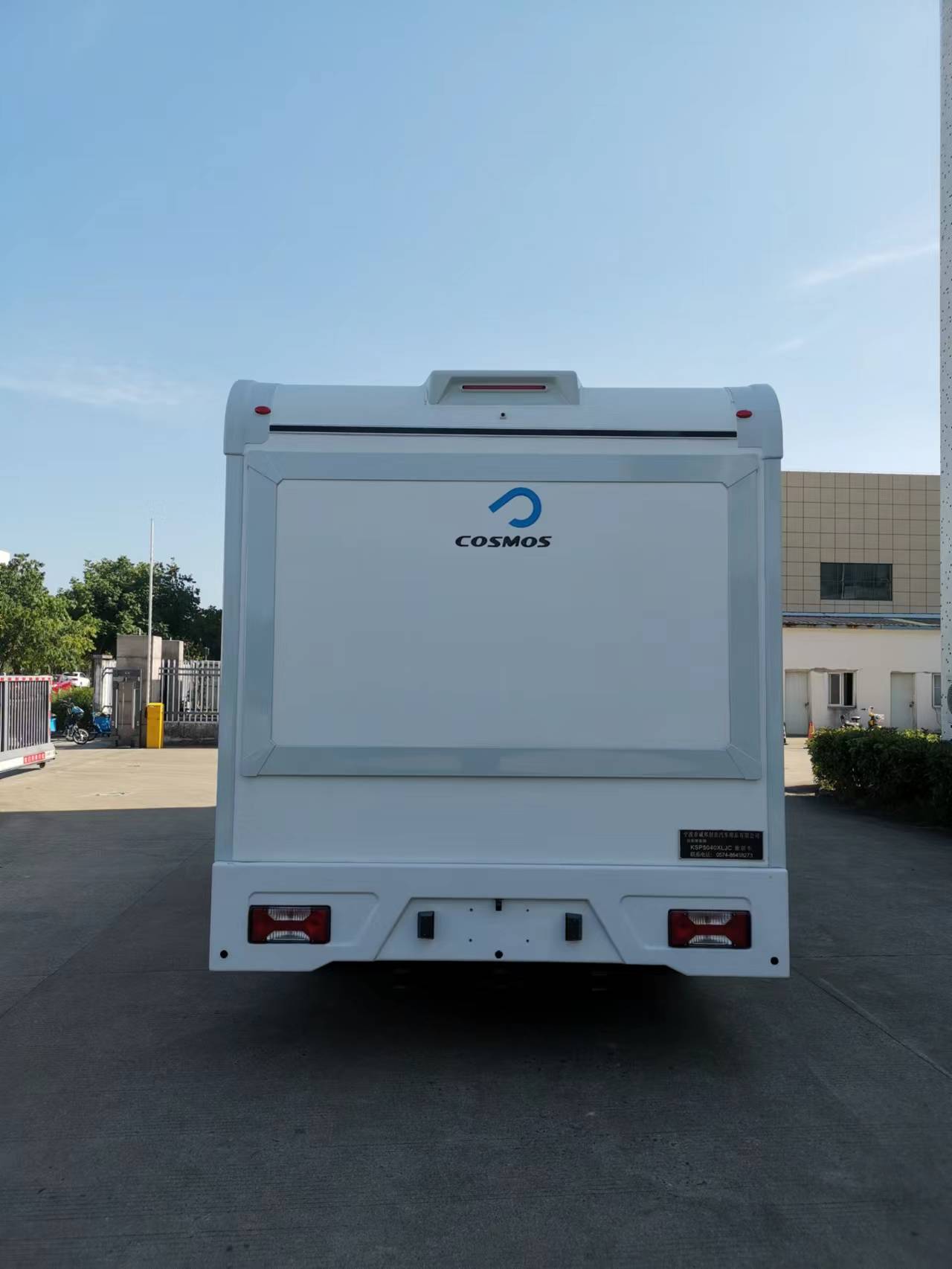 科斯摩斯牌依维柯旅居车在外观时尚霸气造型圆润流畅,可有效降低风阻系数,整车外形尺寸为5998×2300,2400×2880,2950,3050(mm),房厢采用玻璃钢复合车身结构及阻燃保温材料,做工精细;房厢内部配置齐全,床,洗手间,厨房,冰箱,,储物仓,暖气设备,灭火器等等。