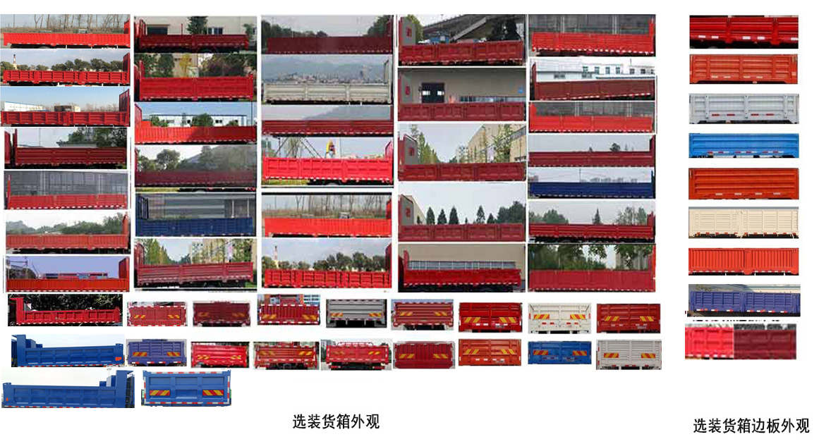 ①自卸方式为后卸;②选装货箱外观,选装镀络前脸及单排驾驶室,选装背管样式,选装不同贴花及文字标贴;选装电瓶箱外观,选装遮阳罩③发动机的油耗申报值(L/100km)为:WP3NQ170E62(26.1),WP4.1NQ190E61(26.4),WP4.6NQ220E62(26.8);④该车装有带卫星定位功能的行驶记录仪;⑤ABS型号为:CM4XL-4S/4M、VIE ABS-II,生产厂家为:广州瑞立科密汽车电子股份有限公司、浙江万安科技股份有限公司;⑥侧防护栏及后防护均采用Q235材料压制成型,均采用螺栓连接方式;后防护装置下边缘的最大离地高度为430mm,断面尺寸为120mm×50mm或120mm×60mm;⑦该车可选装ETC车载装置(直接供电) |