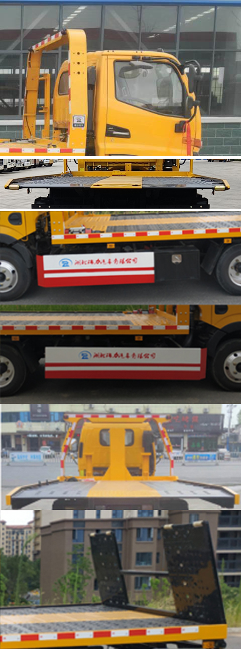 1.ABS系统生产厂家/型号:武汉元丰汽车电控系统股份有限公司/YF8;2.随底盘选装驾驶室,选装铝合金轮辋,选装ABS型号/生产厂家厂家:VIE ABS-Ⅱ/浙江万安科技股份有限公司,CM4XL-4S/4M/广州瑞立科密汽车电子股份有限公司;3.侧、后防护装置材料均为Q235,侧防护螺栓连接,后防护焊接连接,后防护截面尺寸(mm):100×50,下边缘离地高365mm;4.该车主要用于道路清障,主要专用装置为平板、绞盘、钢丝绳、油缸,该车不具备拖牵功能,无托举质量;5.整备质量对应的配件包括随车工具,灭火器,不含备胎;6.选装龙门架样式;7.整车外形长/轴距/前悬/后悬对应关系(mm):5995/3365/1100/1530,5995/3365/1075/1555,5995/3600/1100/1295,5995/3600/1075/1320;8.选装龙门架样式,选装平板结构样式,选装侧防护结构样式,选装侧面操作手柄样式,选装后部结构样式. |