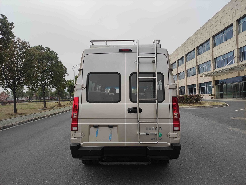 依维柯牌流动服务车在外观时尚霸气造型圆润流畅,可有效降低风阻系数,整车外形尺寸为5480×2035,2055×2470,2690(mm),厢体采用玻璃钢复合车身结构及阻燃保温材料,做工精细;房厢内部配置齐全。