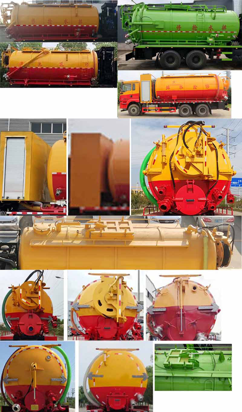 该车主要用于下水道系统的清理和疏通工作;主要装置为罐体及清洗吸污装置;罐体尺寸为(总长×直径)(mm):6050×2150(前部含封头长2700mm为清水罐,后部含封头长3350mm为污水罐);污水罐有效容积:9.345立方米,介质:液态污物,清水罐有效容积:7.476立方米,介质:水;两罐独立,且不能同时满载,清洗功能时用清水罐,吸污功能时用污水罐,两个罐体不能同时使用;侧、后防护材料均为:Q235碳钢,连接方式均为:焊接连接,后部防护截面尺寸(mm):200×60,后部防护离地高度(mm):490;ABS系统生产厂家及型号分别为:西安正昌电子股份有限公司(ZQFB-V);.仅采用底盘4375+1400(mm)轴距改装.选装侧面及后部样式;选装罐体顶部结构.随底盘选装驾驶室. |