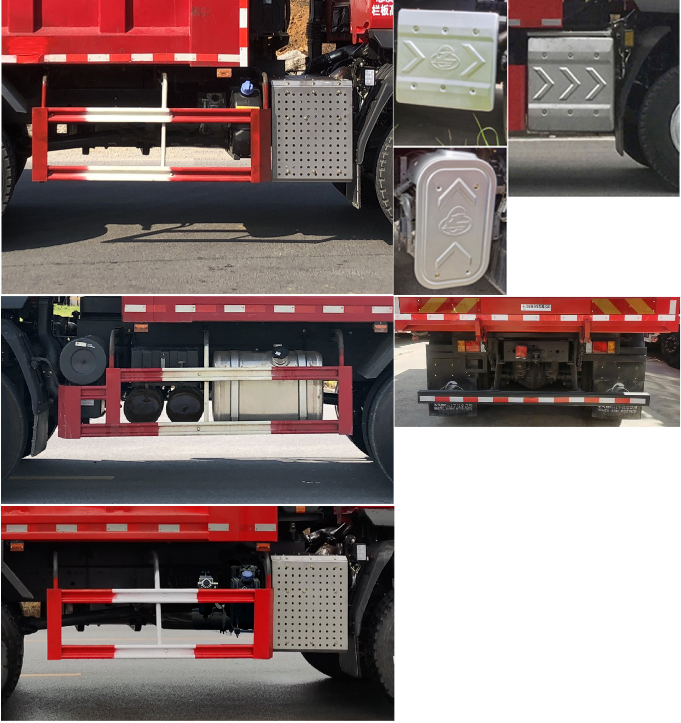 1.ABS型号/企业:3550X-1010(X为字母,表示升级序号)/东科克诺尔商用车制动系统(十堰)有限公司。2.侧面及后下部防护装置说明:材料材质:Q235A,螺栓连接,后部防护装置的主要尺寸参数(1)断面尺寸:120mmx80mm,(2)离地高度480mm。3.仅用3800+1350轴距;总长/前悬/后悬/轴距/厢长的对应关系: 8195/1445/1600/3800+1350/5400,8295/1445/1700/3800+1350/5600,8395/1445/1800/3800+1350/5800。4.选装驾驶室车门窗挡雨板,选装无遮阳罩,选装前面罩格栅,选装翼子板轮眉,选装厢形,选装带折叠式篷布货厢,选装带环保盖货厢,选装贮气筒位置,选装后处理器隔热板,选装无备胎,选装后桥气室位置,选装尿素箱外观,选装贮气筒外观。5.自卸方式为后卸式。6.可选装直接供电式ETC车载装置。7.安装带卫星定位功能的行驶记录仪。8.安装限速装置,限速89km/h。9.仅用YCS06270-60、WP7H300E62发动机;YCS06270-60对应油耗值为36.9L/100km;WP7H300E62对应油耗值为36.9L/100km。 |
