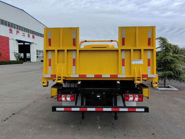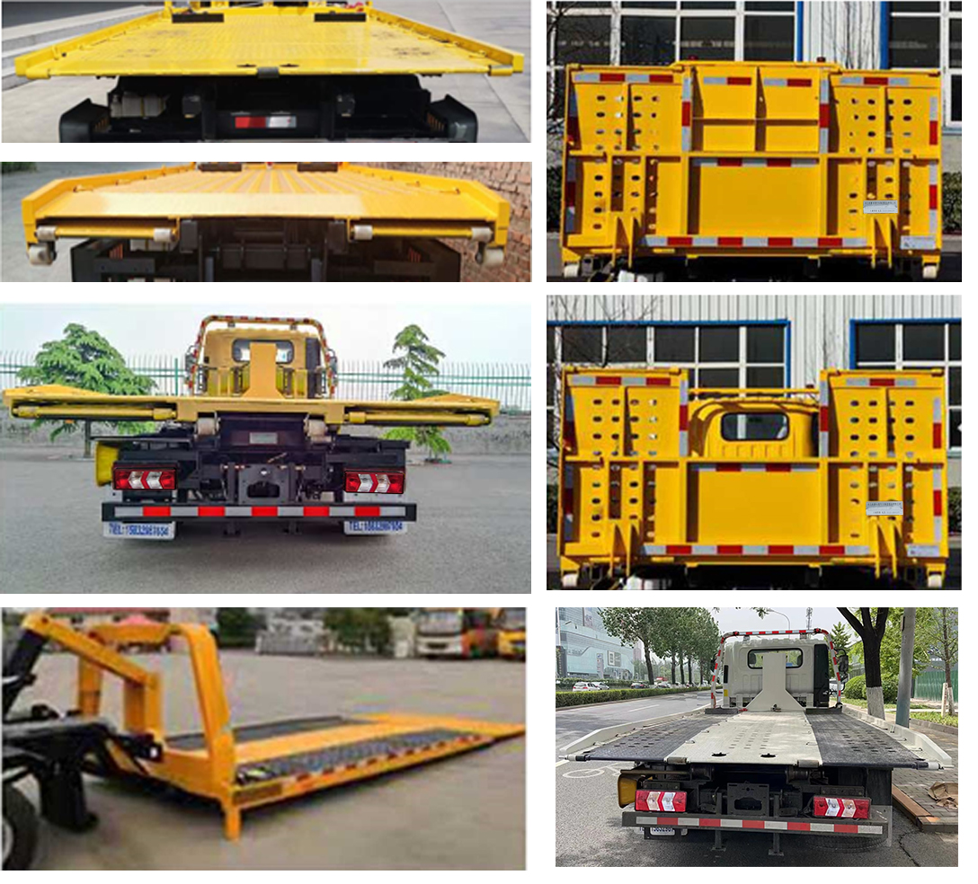该车仅选轴距3365mm;主要用于道路清障,专用装置为平板、绞盘;该车无托牵功能;侧防护装置材料为Q235,连接方式为螺栓连接;后部防护装置材料为Q235,截面尺寸为100×50mm,离地高度460mm,连接方式为焊接连接;ABS型号/厂家为:YF8/武汉元丰汽车电控系统股份有限公司;该车型可选装ETC车载装置;整备质量不含备胎,灭火器,包含停车楔,随车工具.选装不同工作装置外观样式. |