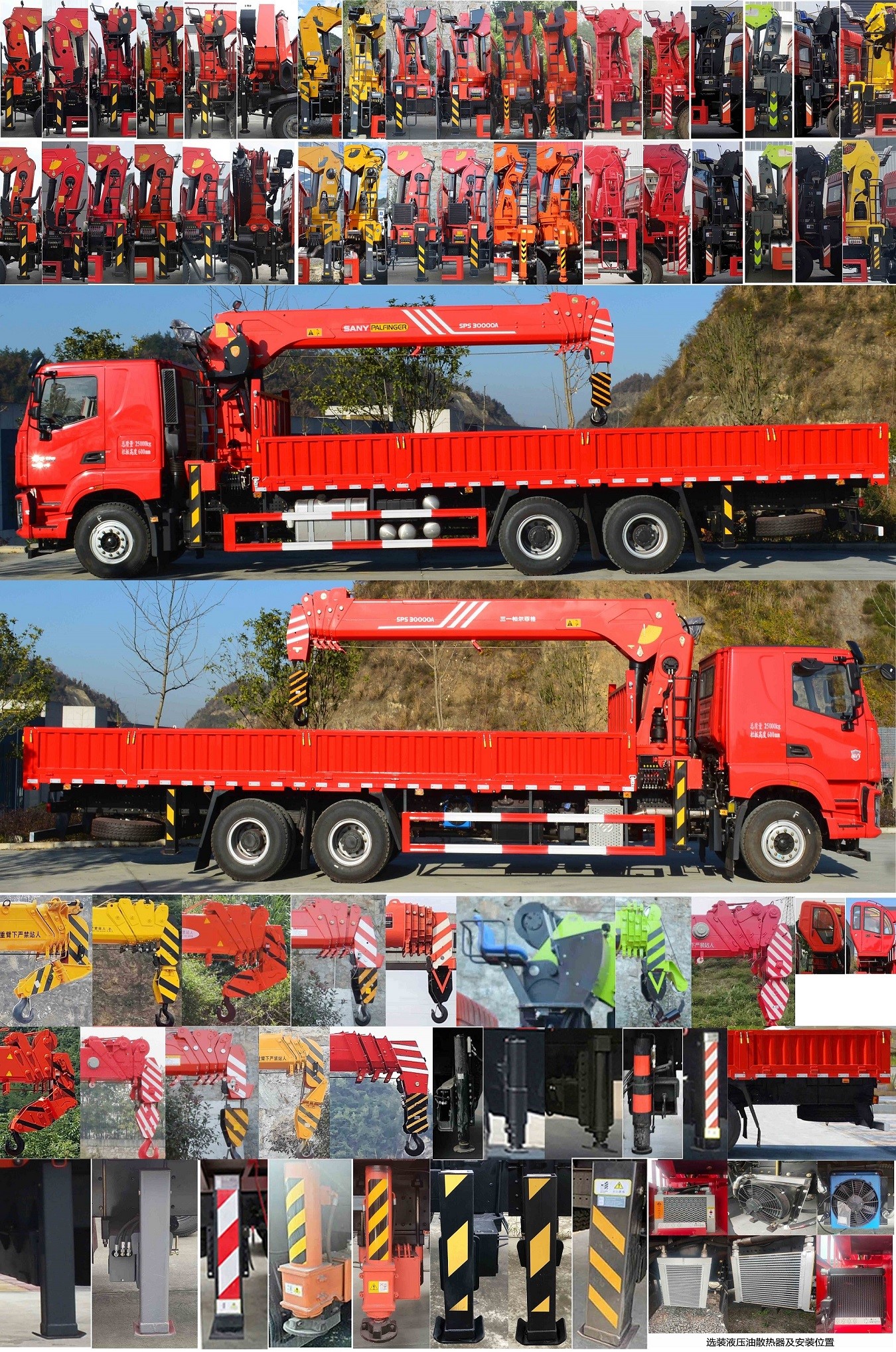 1.发动机型号/油耗值(L/100km)对应关系为:YCK08300-60/32.3;2.吊机型号: SPS30000A,吊机质量(kg):6000,吊机最大起升载荷(kg):9000;3.侧/后防护装置所用材料均为:Q235,连接方式均为螺栓连接,后防护装置断面尺寸(长×宽) mm:120×60,后防护装置离地高度(mm):490;4.ABS型号:ABS/ASR-24V-4S/4M;ABS生产企业:东科克诺尔商用车制动系统(十堰)有限公司;5.该车型可安装采用直接供电方式的ETC车载装置;6.安装具有卫星定位功能的行驶记录仪;7.专用功能及装置:该车的专用装置为随车起重机,用于实现货物装卸的功能;8.随底盘选装驾驶室,选装同类型低顶或半高顶驾驶室,选装不带顶部装饰灯的面罩,选装前面罩,选装遮阳罩,选装侧风窗,选装前保险杠,选装前部组合灯具,选装折叠臂及直臂式随车起重机,选装不同的上,中座椅操作及不带座椅,选装爬梯,选装随车起重机涂装,选装车辆尾部液压伸缩支腿或不带液压伸缩支腿,选装液压油散热器位置及形状或不带液压油散热器,选装货箱样式及箱板结构. |