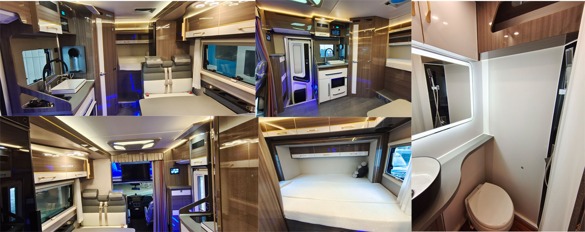 大力牌依维柯国六房车在外观时尚霸气造型圆润流畅,可有效降低风阻系数,整车外形尺寸为5995×2450×3000,3100(mm),房厢采用玻璃钢复合车身结构及阻燃保温材料,做工精细;房厢内部配置齐全,床,洗手间,厨房,冰箱,,储物仓,暖气设备,灭火器等等。