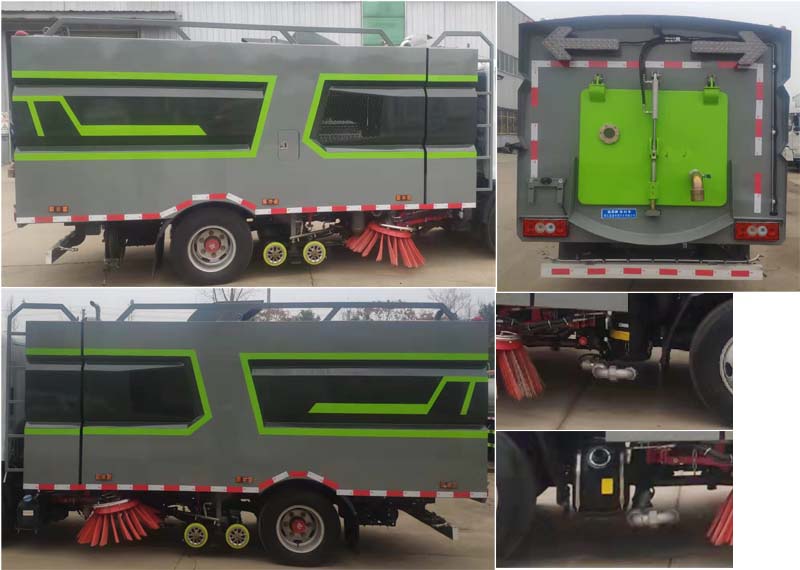 该车主要作用于路面的清扫作业;专用装置为洗扫装置、垃圾箱。随底盘选装驾驶室;侧防护为专用装置代替,后防护材料为:Q235碳钢,连接方式为:螺栓连接,后部防护截面尺寸(mm):120×50,后部防护离地高度(mm):350;ABS系统控制器型号为CM4XL-4S/4M,ABS系统控制器生产企业为广州瑞立科密汽车电子股份有限公司.选装左右及后部样式。选装中部冲洗装置。 |