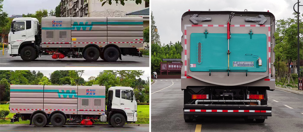 扫路车作为清扫环卫设备之一,它集成有路面清扫、垃圾回收和运输于一体,主要用于大中型城市环卫部门进行道路清扫作业。该车配有扫刷等清扫系统,能够极大地解放环卫工人的工作强度,提高工作效率,减少扬尘等二次污染。今天在这里小编就来给您介绍一款程力威牌东风天龙后双桥25吨洗扫车,看看它是如何运用机械化取代人工从而提高工作效率?