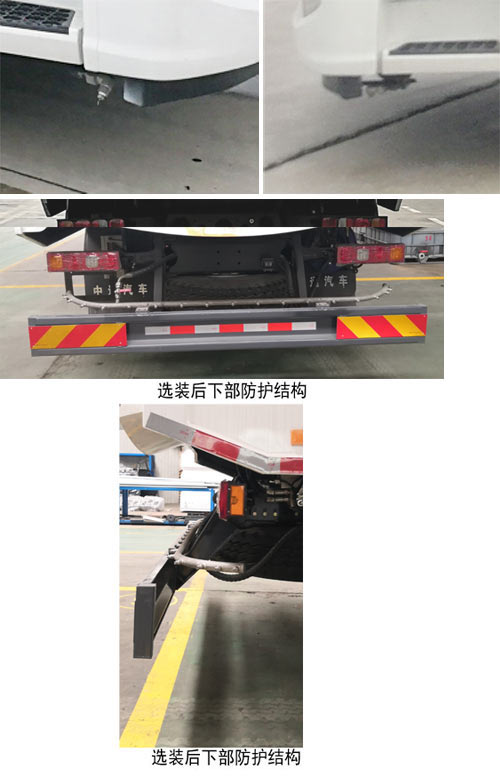 1、该车仅采用5000mm轴距;2、侧面防护装置材料材质为铝合金,连接方式为螺栓连接,后下部防护装置的材料材质为Q235,连接方式为螺栓连接,后下部防护装置的断面尺寸为(mm):240mm×60mm,最大离地高度为395mm;3、随底盘,ABS厂家为:浙江万安科技股份有限公司,型号为:VIE ABS-II;4、随底盘,可选装限速装置,限速89km/h;5、该车专用装置为扫盘、垃圾箱等,通过清扫机构、吸扫结合工作原理对路面进行清扫作业;6、选装前喷布置结构;7、选装护栏清洗机结构,前伸为1450mm,长度为10116mm;8、选装局部布置结构;9、选装后门局部结构;10、选装左侧连接管路和局部布置结构;11、选装右侧管路和局部布置结构;12、选装后部摄像头及布置结构;13、选装后下部防护结构,后下部防护装置的材料材质为Q235,连接方式为螺栓连接,后下部防护装置的断面尺寸(mm)为:240mm×60mm,最大离地高度为400mm. |