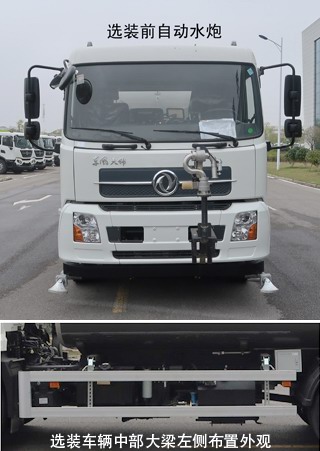 备注 | 该车专用装置为喷雾系统装置、储液箱、气控系统,主要用于道路、广场或固定场所除霾降尘等作业;该车选用底盘4500mm轴距;选装前自动水炮时,前伸780mm,随底盘选装驾驶室外形;整车长9275mm,前悬1430mm,后悬2410mm,后伸935mm;整车长9245mm,前悬1400mm,后悬2410mm,后伸935mm;整车长10055mm,前悬1430mm,后悬2410mm,前伸780mm,后伸935mm;整车长10025mm,前悬1400mm,后悬2410mm,前伸780mm,后伸935mm;该车罐体外形尺寸(长度×长轴×短轴)(mm):4400×2400×1420.罐体总容量10.3立方米,罐体有效容积9.8立方米;侧防护装置材料为铝合金,与车辆连接方式为螺栓连接;后防护装置材料为Q355B,与车辆连接方式为螺栓连接;后部防护装置的断面尺寸为240×65mm,离地高度为420mm;ABS型号/生产厂家:3631010-C2000/东科克诺尔商用车制动系统(十堰)有限公司,ABS 8/东科克诺尔商用车制动系统(十堰)有限公司,ABS-E 4S/4M/采埃孚商用车系统(青岛)有限公司,J ABS/焦作博瑞克控制技术有限公司;选装限速装置,限速为89km/h.还可选装车辆中部大梁左侧布置外观. |