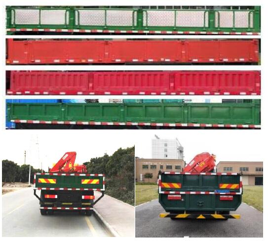 1.本车型已安装侧面和后部反光标识.2.上装折臂式起重机型号SQ720,起重机质量9100kg,最大起升载荷8800kg,选装折臂式起重机型号BS560,SPK50002,起重机质量9100kg,最大起升载荷8800kg. 3.防护材料均为Q235,侧防护采用螺栓连接,后部防护为裙板结构,离地高度为520毫米.4.选装不同货厢边板材料及结构, 随底盘选装H5驾驶室,H7驾驶室,该车仅用1950+4500+1350mm和2100+4350+1350mm轴距.5.该车安装带有卫星定位功能的行驶记录仪,ABS型号/企业:ABS-E 4S/4M/威伯科汽车控制系统有限公司。 |