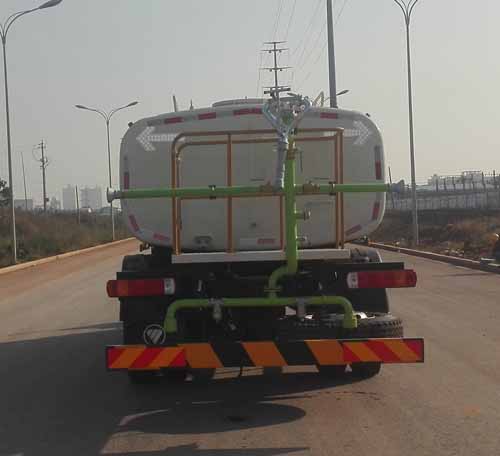 该车配置三种罐体,配置一:罐体有效容积9.34立方米,罐体外形尺寸(长轴×短轴×长度)(mm):2400×1450×3950.介质名称:水,介质密度:1000千克/立方米;配置二:罐体有效容积8.98立方米,罐体外形尺寸(长轴×短轴×长度)(mm):2300×1270×3950.介质名称:水,介质密度:1000千克/立方米;配置三:罐体有效容积8.82立方米,罐体外形尺寸(长轴×短轴×长度)(mm):2300×1270×3950.介质名称:水,介质密度:1000千克/立方米;后防护装置材料为Q235A,后防护装置断面尺寸:150×50mm,后防护离地高度:430mm;与车辆的连接方式为螺栓连接.该车安装具有卫星定位功能的行驶记录仪.ABS控制器型号/生产企业对应关系:3550X-1010/东风电子科技股份有限公司.前喷淋架前伸830/983mm.选装喷雾装置.选装工具箱.选装前清洗装置前伸1203mm;选装照片1为:选装喷雾装置;选装照片2为:选装带工具箱及选装前清洗装置;选装照片3为:随底盘选装前围. |