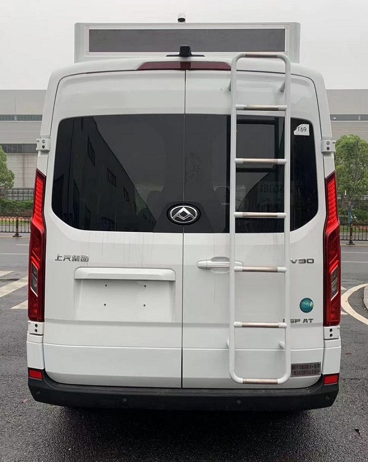 安稳号牌上汽大通国六流动服务车在外观时尚霸气造型圆润流畅,可有效降低风阻系数,整车外形尺寸为5498,5650×2062,2160×2495,2535,2560,2600,2700,2740,2820,2860,2850,2890,2970,3010(mm),厢体采用玻璃钢复合车身结构及阻燃保温材料,做工精细;房厢内部配置齐全。