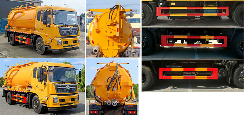 备注 | 该车专用装置主要由清水罐和污水罐组成,用于下水道排污及疏通,罐体带有举升功能;清水罐和污水罐为两个独立罐体,清洗功能时用清水罐,吸污功能时用污水罐,清洗、吸污两种功能不能同时使用,两个罐体不能同时满载;罐体尺寸(总长×直径):5800×1950mm.前部2700mm为清水罐,后部3100mm为污水罐,污水罐罐体总容量8.2立方米,有效容积7.88立方米,清水罐罐体总容量6.6立方米,有效容积6.3立方米。侧/后防护材料均为Q235,侧防护采用螺栓连接,后防护采用焊接连接,后防护截面尺寸:120×60mm,下边缘离地高:430mm;仅采用4700mm轴距底盘;ABS型号/生产厂家:3631010-C2000/东科克诺尔商用车制动系统(十堰)有限公司,ABS 8/东科克诺尔商用车制动系统(十堰)有限公司,ABS-E 4S/4M/采埃孚商用车系统(青岛)有限公司,J ABS/焦作博瑞克控制技术有限公司;罐体后部箭头灯和顶部照明灯仅在车辆作业时使用,行驶中不点亮;选装限速装置,限速89km/h;随底盘选装驾驶室,选装罐体侧面管道布置,后部卷盘样式,吸污泵安装位置,随底盘选装车辆处理器,电瓶,尿素罐样式及安装位置。选装罐体外观。 |