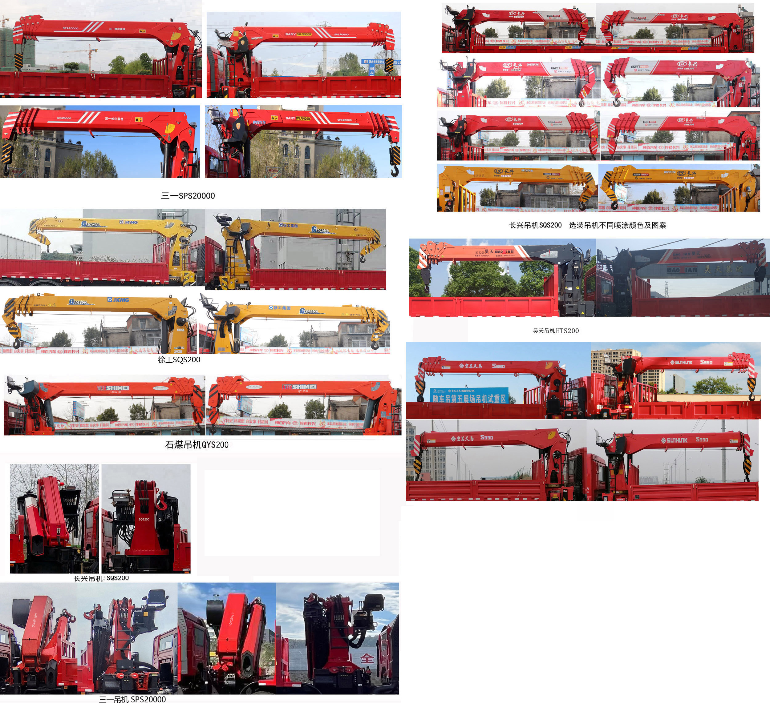 专用功能及装置:货箱和吊机,用于货物的起吊和托运.吊机型号/最大起升载荷(kg)/吊机重量(kg)分别为:ZLT2000/8000/5500;HTS200/5500/8000;S200/5500/8000;SPS20000/5500/8000;SQS200/5500/8000;QYS200/5500/8000;SQS200/5500/8000.侧防护装置材料为Q235,连接方式为螺栓连接;后防护装置材料为Q235,连接方式为焊接连接,后部防护断面尺寸为120×50mm,后部防护离地高度(mm):500.ABS系统型号为:ABS-E,生产企业为:采埃孚商用车系统(青岛)有限公司.选装EBS,EBS系统控制器生产企业:采埃孚商用车系统(青岛)有限公司,型号:EBS3;发动机油耗申报值(L/100km)对应为WP10H400E62/31.64;WP8.350E61/32.17;MC11.40-61/30.18,WP9H350E62/31.32,WP7H270E62/31.36,WP7H320E62/31.36,MC07H.35-60/31.57,;选装ETC车载装置;安装具有卫星定位功能的行驶记录仪.该车可选装限速装置,限速89km/h.仅选用5825+1350mm轴距.选装箱板结构,选装支腿,选装座椅位置,选装基座样式,选装吊机不同喷涂颜色及图案; |