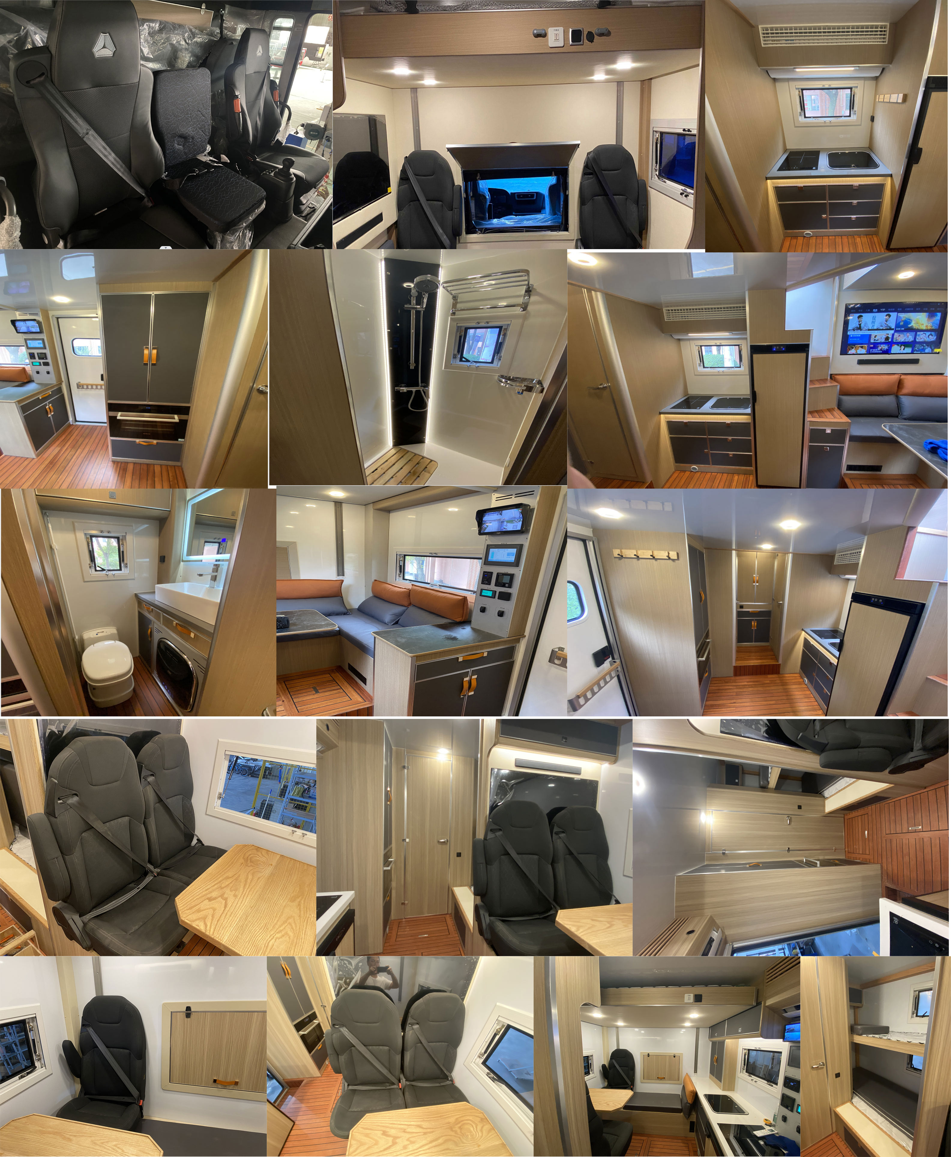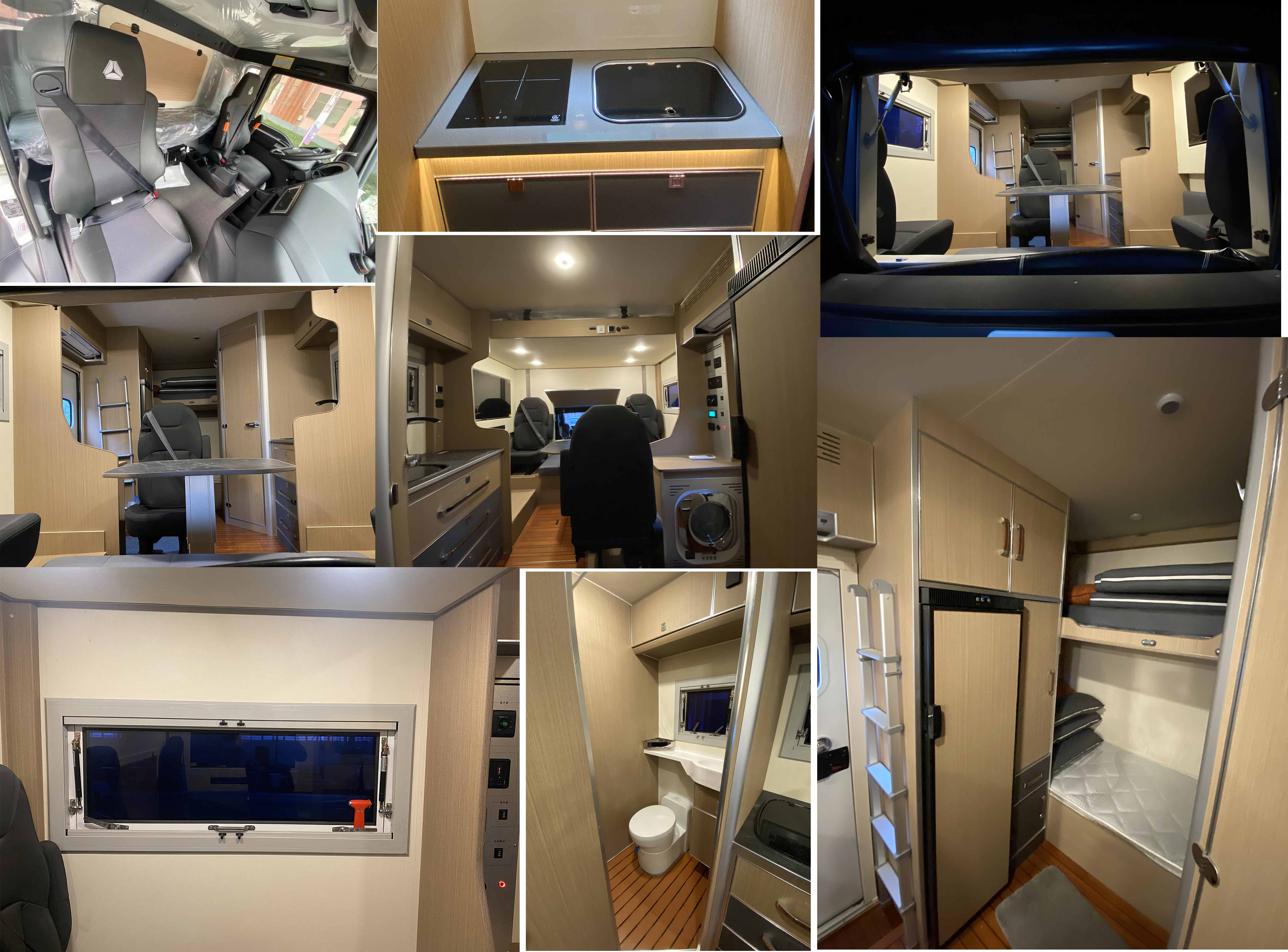 骁霸王牌汕德卡国六旅居车在外观时尚霸气造型圆润流畅,可有效降低风阻系数,整车外形尺寸为5999×2500,2550×3680,3780,3950(mm),房厢采用玻璃钢复合车身结构及阻燃保温材料,做工精细;房厢内部配置齐全,床,洗手间,厨房,冰箱,,储物仓,暖气设备,灭火器等等。