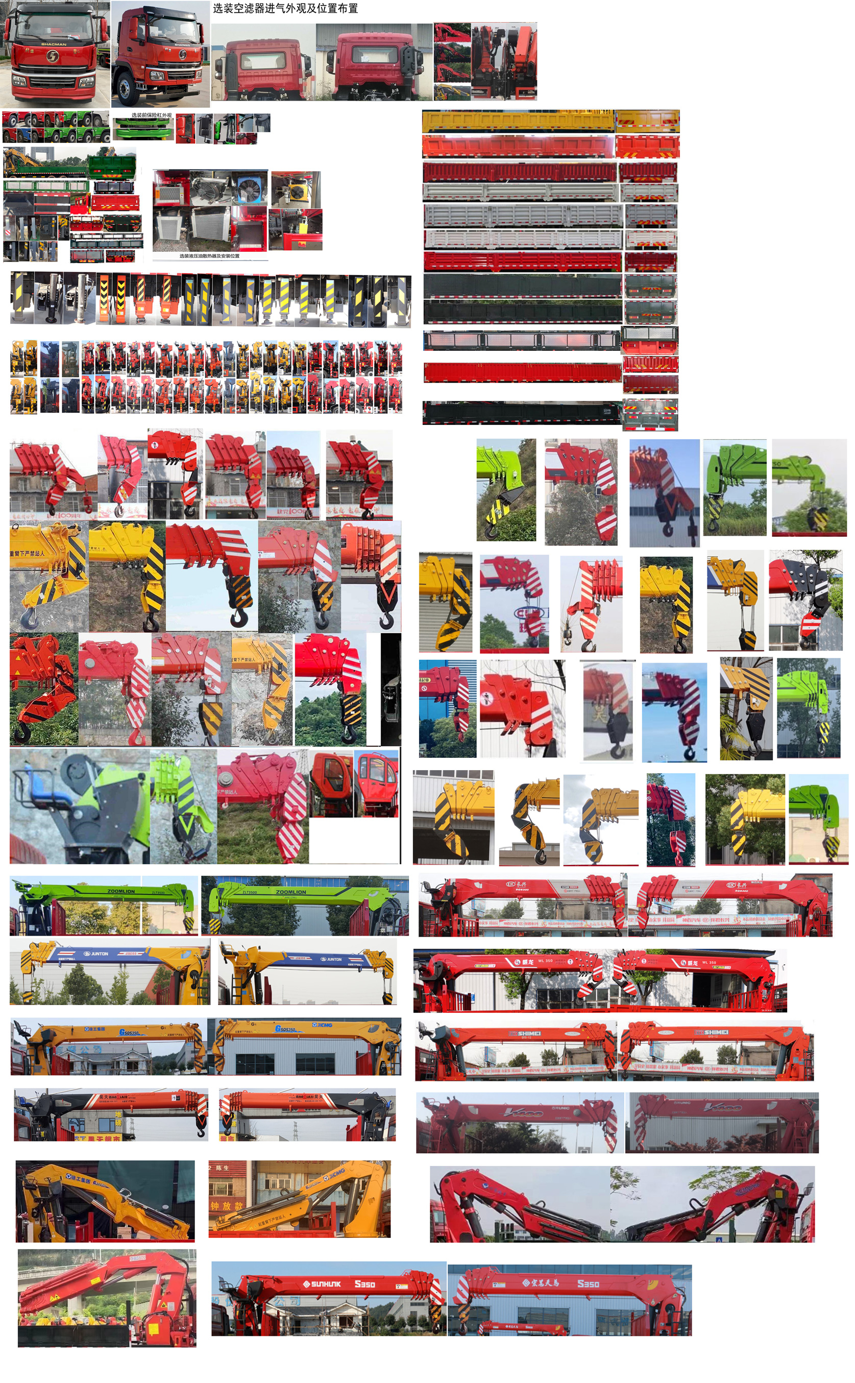 1.该车的专用装置为货箱和吊机,用于货物的起吊和托运;直臂式吊机型号/最大起升载荷(kg)/吊机重量(kg)为:SPS35000/14000/6500,ZLT3500/JSQ350/SQS300/WL350/HTS350/QYS-14/SQS350/URV1400/SQZ300/BS500/S350/SQ480/14000/5500;吊机上安装的照明灯具,仅在驻车作业时开启使用,行驶过程中不可点亮;2.侧后防护装置材料为Q235,侧防护连接方式为螺栓连接加焊接连接,后防护连接方式为螺栓连接,后防护离地高度为500(mm),断面尺寸为120×60(mm);3.ABS型号及生产企业:ZQFB-V/西安正昌电子股份有限公司;4.发动机/油耗值(L/100km)对应关系:YCK08350-60/37.12;YCK08330-60/37.12;YCK08300-60/37.12;WP8.350E62/37.18;5该车型可选装ETC车载装置;6.安装带卫星定位功能的行驶记录仪;7.整车长/前悬/轴距/后悬对应关系(mm):12000/1450/2200+4475+1350/2525;12000/1450/2200+4475+1400/2475;选装驾驶室,选装臂头、货箱、支腿及吊机. |