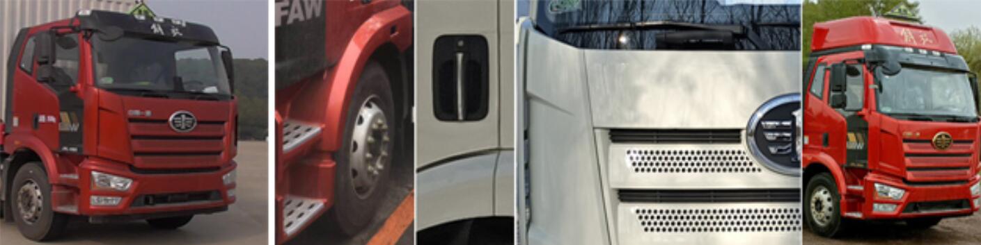 厢体顶部封闭,不可开启;该车为危险品运输车,运输独立容器(瓶)包装的货物;危险货物类项号:2.1,2.2;运输易燃气体时挂2.1类警示牌,运输非易燃无毒气体时挂2.2类警示牌;仅采用轴距(mm)1900+5600,1900+5100,整车长/前悬/轴距/后悬(mm)对应关系:11980/1400/1900+5600/3080,11000/1400/1900+5100/2600;发动机/油耗申报值(L/100km)对应关系为:CA6DH1-26E61/26.04,CA6DH1-24E61/26.04,CA6DH1-22E61/26.04;侧防护材质为Q235,焊接连接;装有液压尾板时后防护材质为Q235,焊接连接,断面尺寸(宽×高):50×120(mm),离地高度:480mm;尾板收起状态水平长度为300mm,尾板质量为550kg;EBS控制系统生产厂家/型号:威伯科汽车控制系统(中国)有限公司/EBS3:浙江万安科技股份有限公司/VIE EBS-d;仅采用前轮盘式制动器,前置排气管,子午线轮胎,安装静电带,限速装置的底盘,限速79km/h;转向轮安装爆胎应急防护装置;后轴装配空气悬架,安装具有卫星定位功能的行驶记录仪;可选装直接供电ETC车载装置;选装不带液压尾板时后防护材质为Q235,焊接连接,断面尺寸(宽×高):50×120(mm),离地高度:480mm;随底盘选装驾驶室,选装不同厂家尾板以及尾板外观,选装无尾板后部样式. |