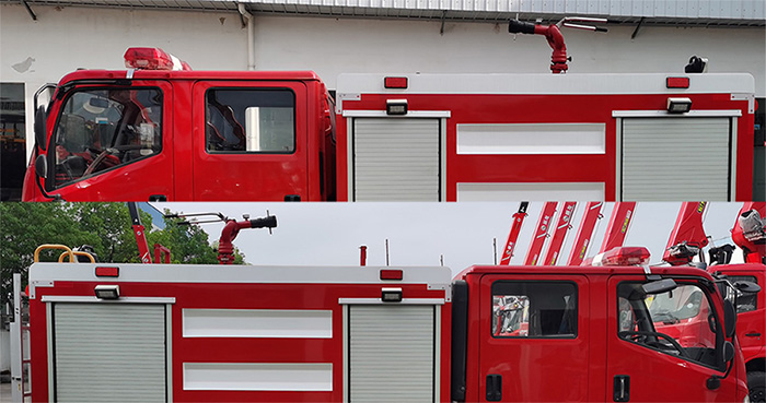 选装红色爆闪灯。水罐容积:2.600立方米,水罐为一异型罐,前端尺寸:900×870×1105mm,后端尺寸:840×2000×1105mm。整体式侧后防护结构,后防护离地高度:454mm。ABS生产企业为广州瑞立科密汽车电子股份有限公司,型号为CM4XL-4S/4M。主要专用装置有消防泵、消防炮。灯具仅在作业时使用。 |